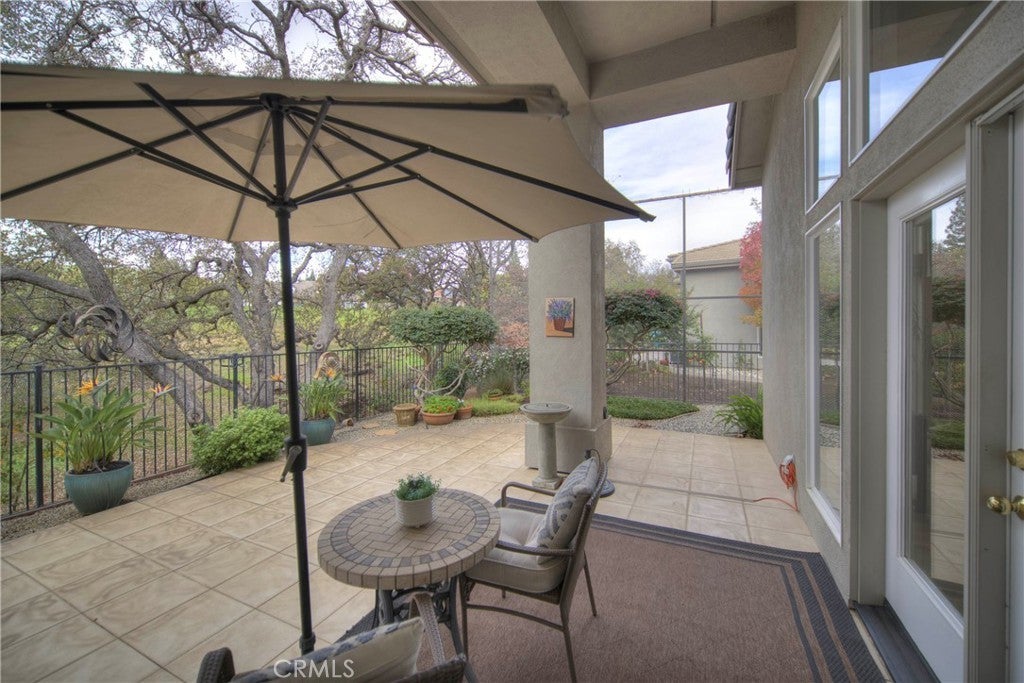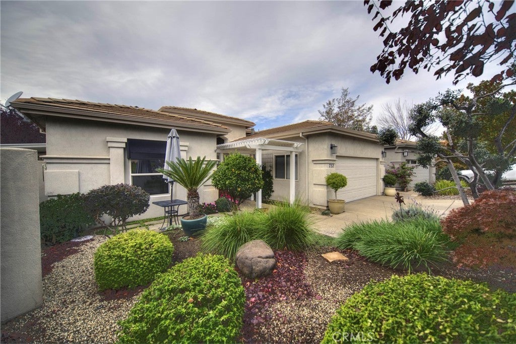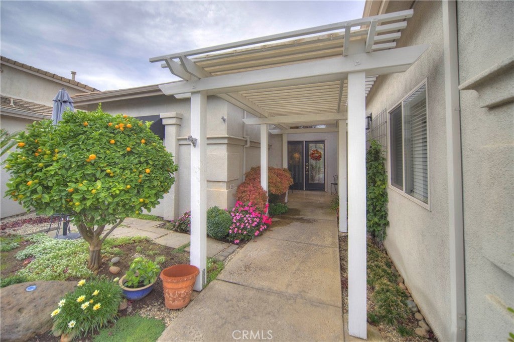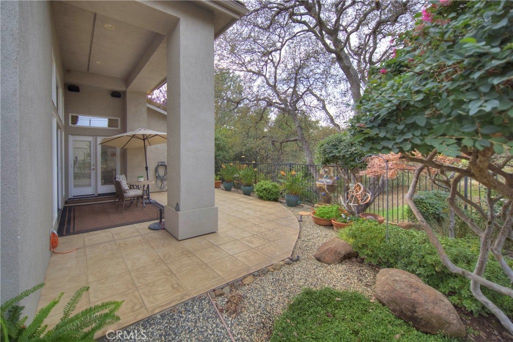 Welcome to 732 Serrano Ct — Your Canyon Oaks retreat! Nestled in the prestigious gated community of Canyon Oaks this stunning home sits within the desirable Arroyo Greens subdivision. From the moment you arrive, you’ll appreciate the high-end, low-maintenance landscaping, thoughtfully designed with lavender, butterfly bushes, maples, and citrus trees. A charming covered arbor beautifully frames the front entrance, setting the tone for the elegance inside. Step through the front door and you’re greeted by soaring ceilings, newer vinyl plank flooring, and a bright, open floor plan that seamlessly connects the living room, dining area, and kitchen. The great room features a cozy gas fireplace and floor-to-ceiling windows that fill the space with natural light and views of the lush outdoors. The chef’s kitchen is as stylish as it is functional, showcasing white quartz countertops, rich cherry cabinetry, GE appliances, double ovens, an island, and a five-burner gas stove with a micro-hood—perfect for hosting or everyday cooking. The primary suite is your private sanctuary, complete with cathedral ceilings, dual closets (including a walk-in), and French doors that open to the serene backyard. The en suite bathroom offers dual sinks, a soaking tub, and a tiled walk-in shower—the ideal space to unwind. On the opposite wing, you’ll find two spacious guest bedrooms and a full bathroom, providing comfort and privacy for family or guests. Step outside through one of the three sets of French doors to a covered patio overlooking a seasonal creek and the Canyon Oaks golf course. The meticulously landscaped yard offers a peaceful setting for morning coffee, evening wine, or entertaining friends—all with breathtaking sunset views. Additional highlights include a two-car attached garage with an insulated door and owned solar (installed in 2022) that covers all your energy needs. It’s time to experience the relaxed luxury of country club living at Canyon Oaks—where every day feels like a getaway.