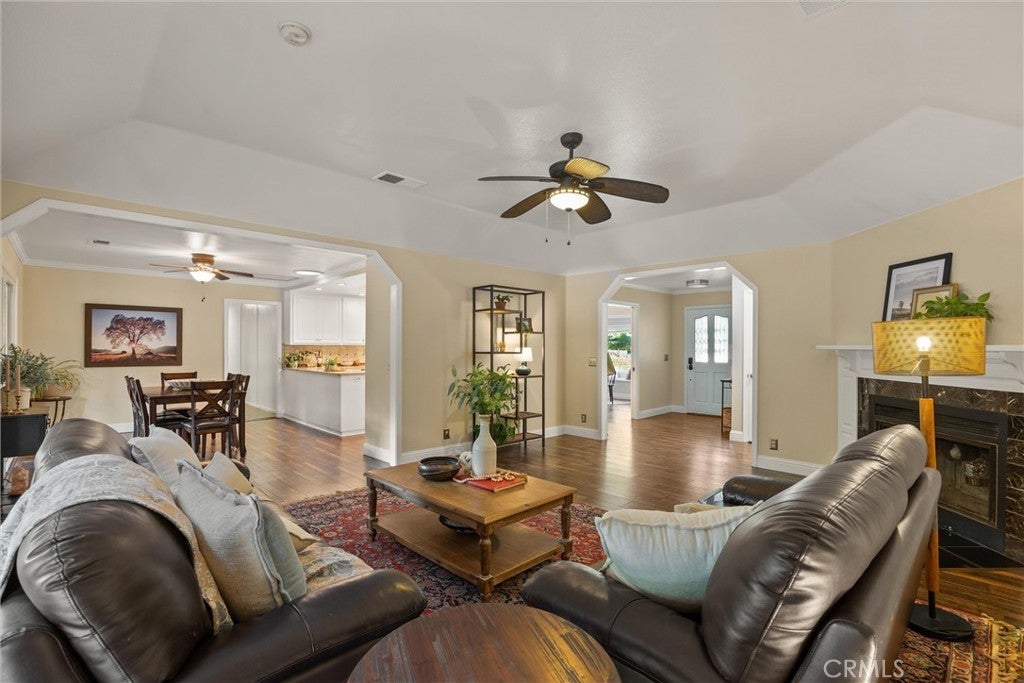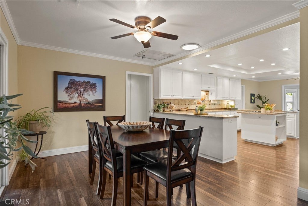 • Interior FeaturesBreakfast Area, Ceiling Fan(s), Crown Molding, Separate/Formal Dining Room, Eat-in Kitchen, Granite Counters, High Ceilings, Pantry, Recessed Lighting, Storage, Bedroom on Main Level, Main Level Primary, Primary Suite, Walk-In Closet(s), Tray Ceiling(s)