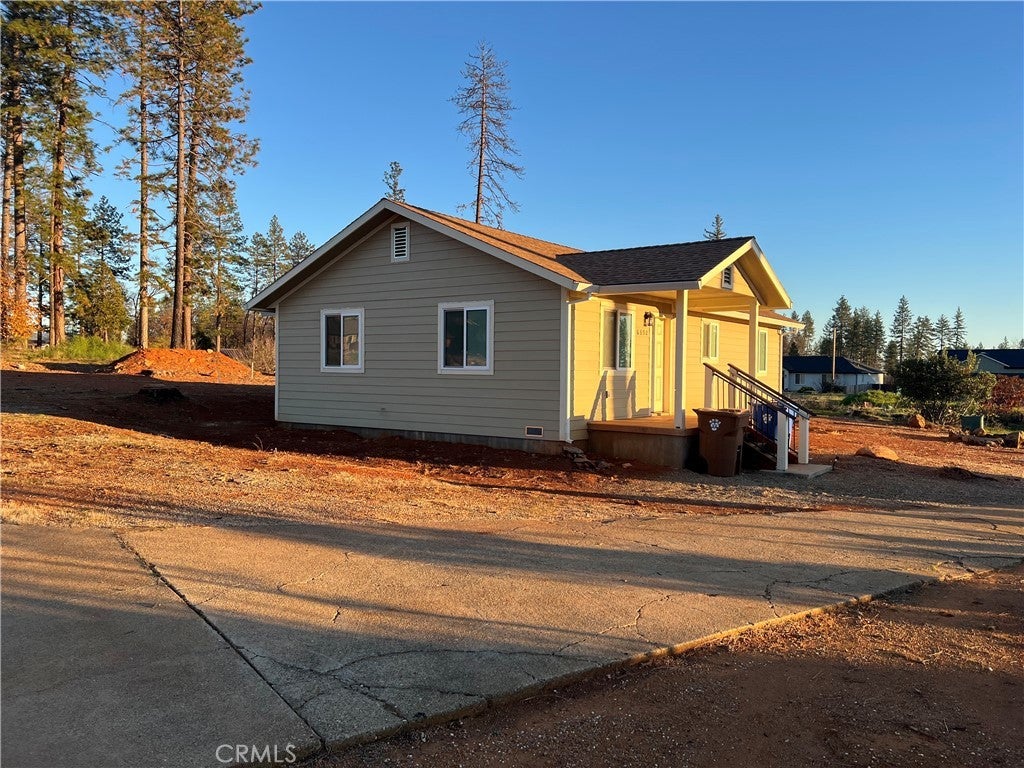 Central Paradise Location for this 2 bedroom 1 bath 2023 built home. The spacious .41 acre lot is level and has room for a shop or garage. The covered concrete front porch welcomes you into the home. The main living area has the open concept with the living room, dining room and kitchen are essentially one room. The kitchen has a refrigerator, and a gas oven and range. New cabinets with a laminated countertop. The bathroom has a vanity and tub/shower combination.