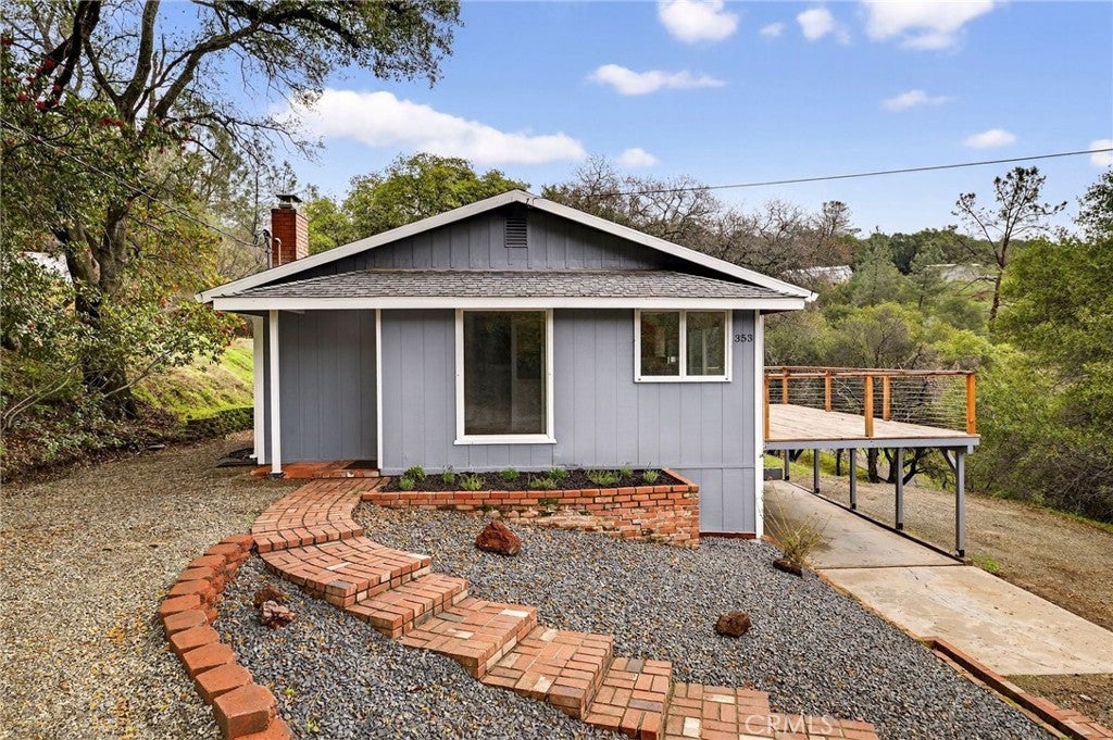 Newly remodeled 3-bedroom, 2-bathroom home featuring a bright open floor plan designed for comfortable living and entertaining. The spacious kitchen offers ample counter space and opens seamlessly to the dining and living areas. The living room includes a cozy fireplace, along with a small sitting nook that works perfectly as a reading area or home office. Step outside to a large open deck, ideal for enjoying the surrounding foothill setting and outdoor gatherings. Located in the lower foothills of Oroville, this property offers a peaceful setting while being just minutes from Lake Oroville, recreation, and outdoor activities. A great opportunity to enjoy modern updates, open living spaces, and a desirable location close to nature.