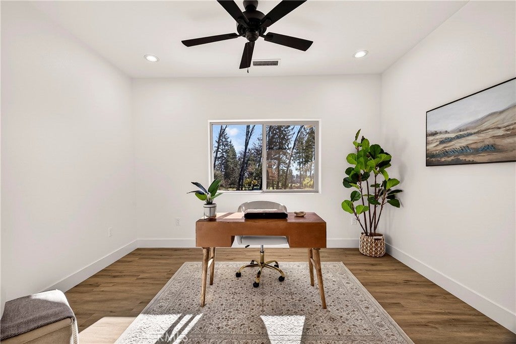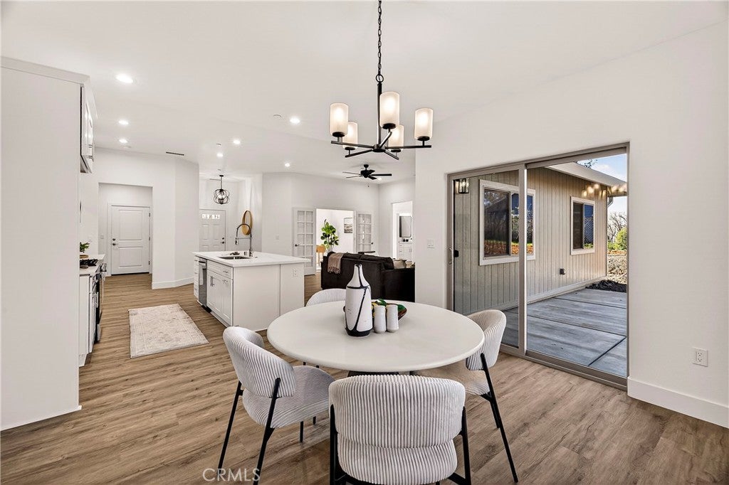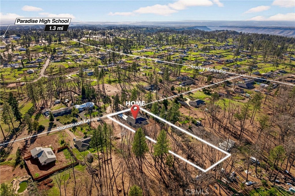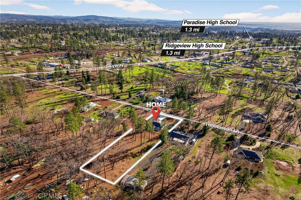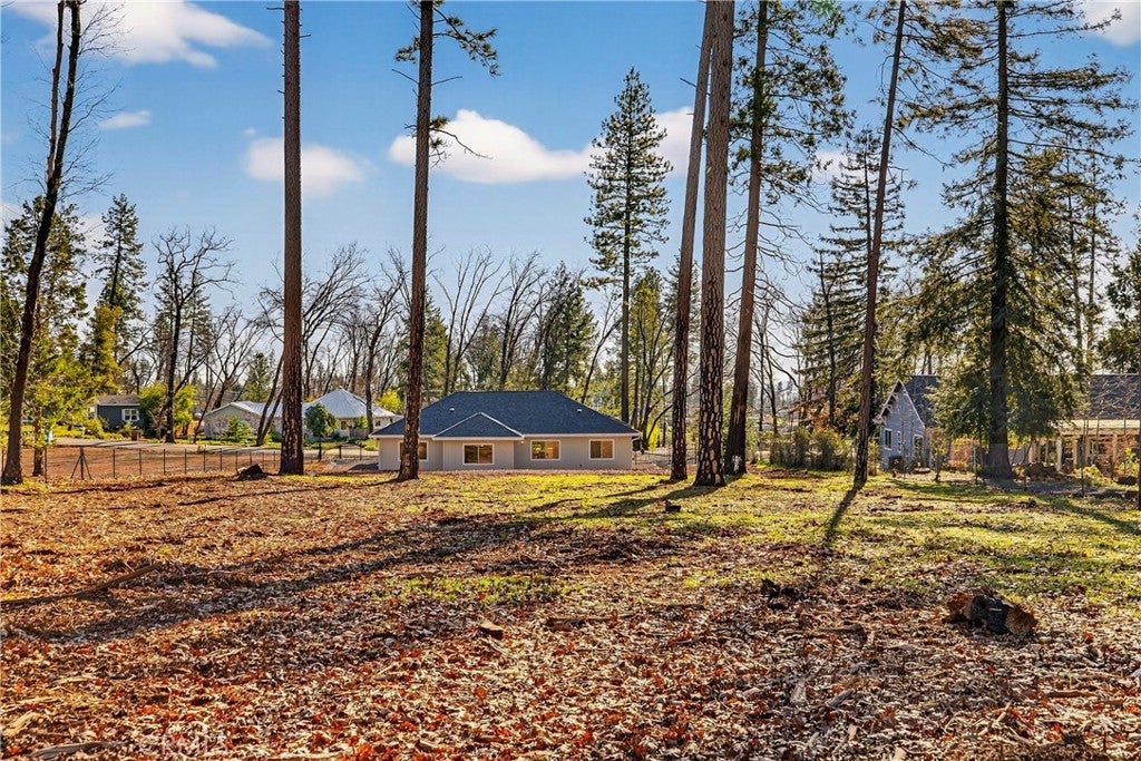 New 2025 Paradise Custom Home with 3 bedrooms and Spacious Office built by a second-generation Paradise Home builder, West Family Homes. Fantastic Paradise location and a full acre with fenced back yard. New 2025 Septic system installed in the front yard, so the new owner has at least a 1/2-acre backyard ready for a Shop, Pool and/or ADU. There are two metal gated entrances on either side of the home for easy access. On one side is R.V. 30amp plug and waste disposal access. The oversized 23ft wide concrete driveway provides plenty of parking. The 19ftX6ft covered front porch welcomes you and your guests into the home. The home offers 5" baseboards and Luxury Vinyl Plank flooring throughout. The home offers an open floor plan with 9ft ceilings & LED recessed lights on dimmer switches in every room. The kitchen offers a large 8ftX4ft island with undermount stainless sink, Quartz counter tops with subway tile backsplash, Whirlpool Gold appliances w/ a natural gas oven/range and solid wood shaker style cabinets with dove tail drawers and soft close drawers & cabinets. The kitchen overlooks the living room and dining room. The dining room has a large picture window and slider to the concrete patio. Off the living room is the bonus/spacious office with glass French doors. This floor plan does offer the split primary with two guest bedrooms and bath on one side of the home. The guest bath offers 17" deep tub/shower combination and a 5ft vanity with quartz counter tops. The spacious primary bedroom offers a 9ft to 10ft tray ceiling. The primary bath offers 8ft vanity with two sinks, quartz countertop, sliding glass door step in shower, walk in closet and separate toilet area. The laundry/utility area offers a full-size pantry, shaker style cabinets above the washer/dryer area and an entry organizer area with quartz countertop. The fully finished oversized 540 square foot garage has 5" baseboards, L.E.D. recessed lighting and an epoxy floor. This property is ready for a new resident in Paradise. So many possibilities with this 1 Acre lot.