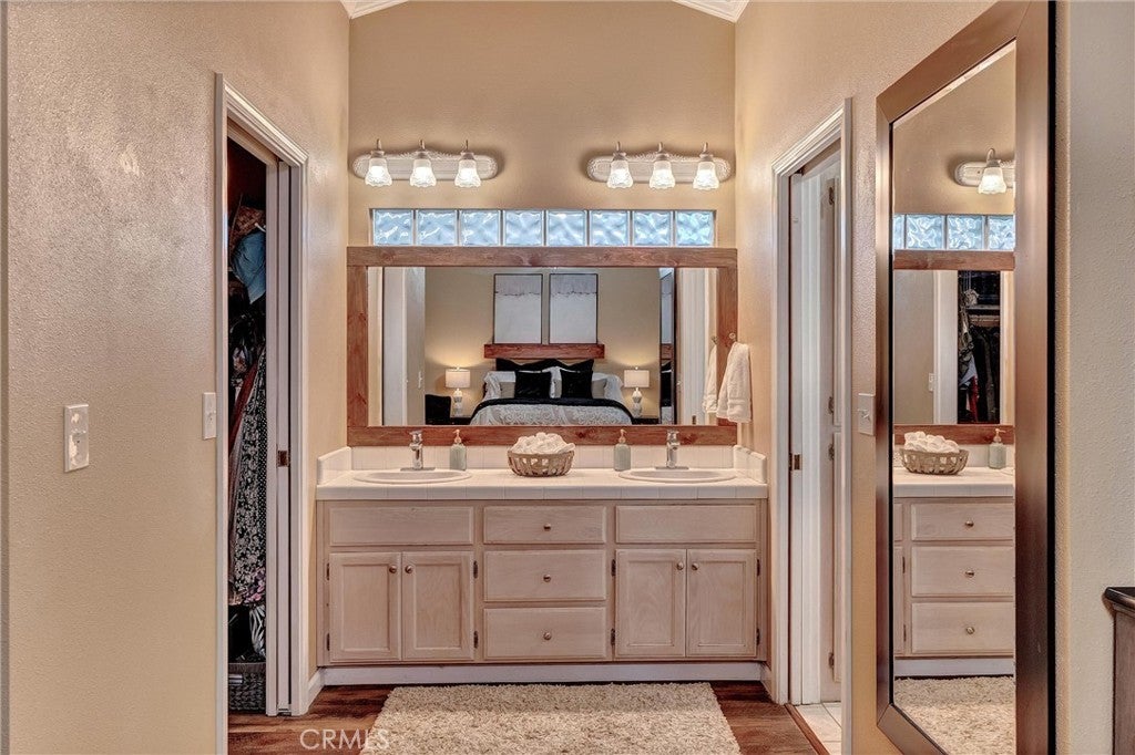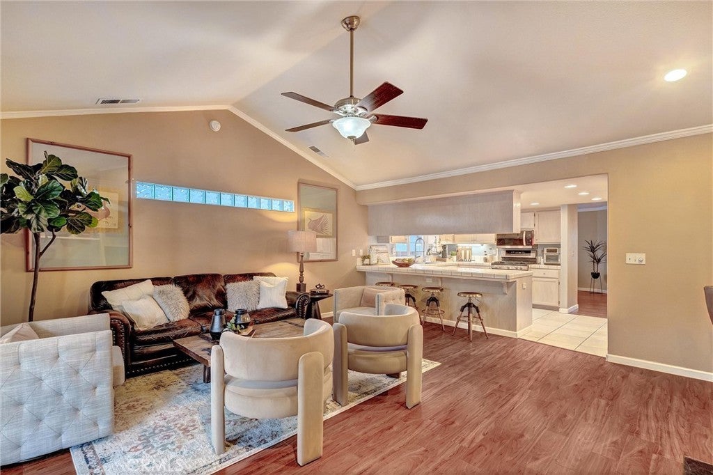 • Interior FeaturesCrown Molding, Cathedral Ceiling(s), Separate/Formal Dining Room, Eat-in Kitchen, Tile Counters, All Bedrooms Down, Bedroom on Main Level, Main Level Primary, Walk-In Closet(s)