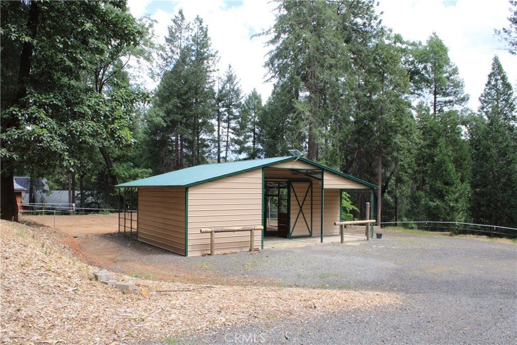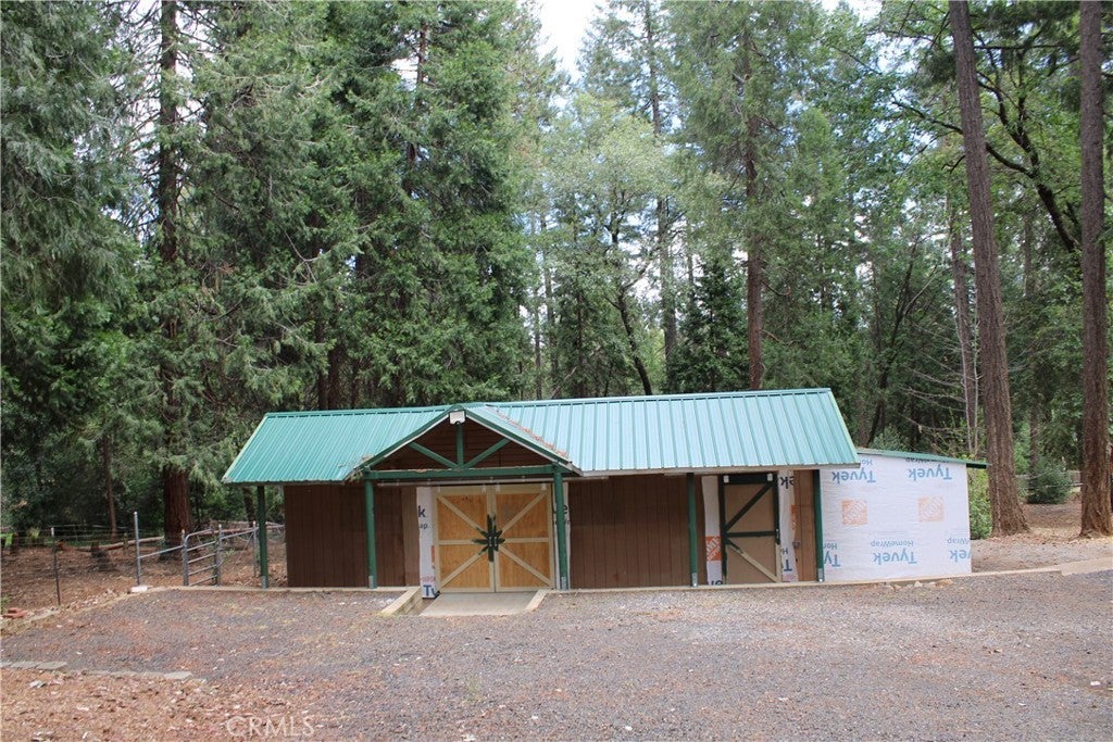 Charming and Peaceful Homestead on over 3 acres! This amazing property has it all! Completely updated 3BR, 3BA Home. Newly remodeled kitchen with gorgeous custom Alder cabinets and Corian counters. Bathrooms updated with modern vanities and custom tile accents. Interior features beautiful solid custom wood doors and trim throughout the home. Handsome raised hearth with central wood burner keeps home warm and cozy in winter weather. Acreage is set up for horses, chickens or whatever your fancy. Property is fenced and cross fenced including a Great new 32'X36' metal barn on slab with enclosed storage that can be used as a shop. Numerous outbuildings including 36' X12' detached workshop and covered RV pad. Fully landscaped with sprinklers, raised garden beds, small outdoor pond and cozy patio with a hot tub included! Detached large two-car garage has a finished 12'X24' bonus room above that could function as an office, plus extra shop area and a dog kennel. Ranch includes electric front gate and has a 2500 gallon water storage tank. Located in a great neighborhood on a private road and backs up to green belt with many trails and creek access. A truly peaceful and lovely property beautifully maintained and ready for the next happy owners. This is a special property for one lucky Buyer!!