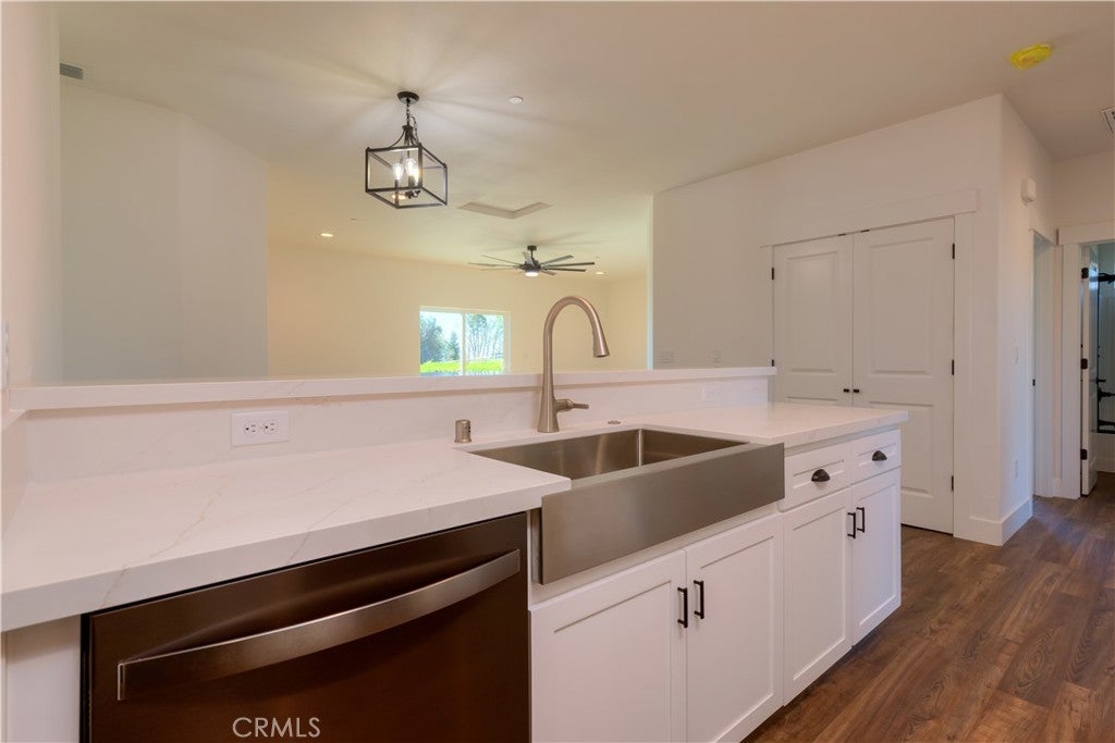 Outstanding new home in lower Paradise location on large .56 acre lot! Open floor plan concept, large great room with dining area incorporated and just off kitchen. Split bedroom plan, with spacious primary set up, offering high ceilings, large walk in closet full on suite as well. Additional bedrooms both ample in size, picture windows and high ceilings with large closets. Fully finished two car garage, concrete drive and walkway, RV access or boat parking on this huge lot waiting for some personal customization. LVP flooring, with carpet in bedrooms, hard wood cabinets with two tone finish, solid surface counters, soft close drawers and doors, stainless appliances with refer too. Nice size laundry room with cabinets as well. Upgraded fixtures and trim in this beauty. Owned solar high efficiency HVAC system, and all new septic system. Located on quiet small lane with stick built homes around it, offering good elbow room tho.