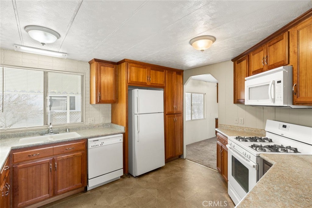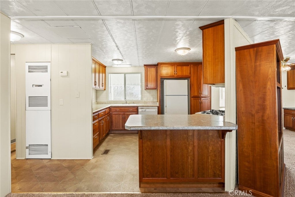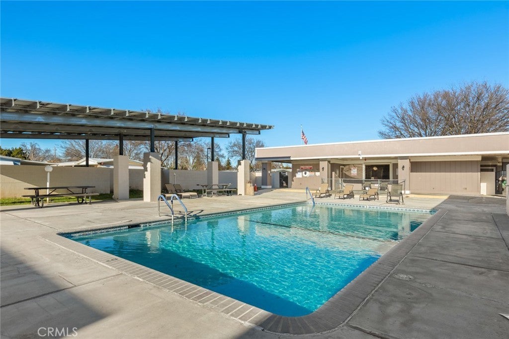 Age restricted park, 55 or older. Clean unit with custom cabinets, newer appliances, new awning and widened parking area, metal shop/storage with work bench. Bathrooms upgraded with shower in the Master and tub/shower in the 2nd bath. Entertainment center included in living area. This unit is bright and clean with ceiling fans in most rooms, matching counters in kitchen and baths, window blinds, central heat and air, and low flow toilets. The long front patio faces north to enjoy cool spring days, and the pool is across the street when summer days hit, and you are looking for a place to cool off. You will find plenty of guest parking just across the street and office, social hall, mailbox and library to be involved in all the activities offered by the park. Don't miss this great affordable unit.