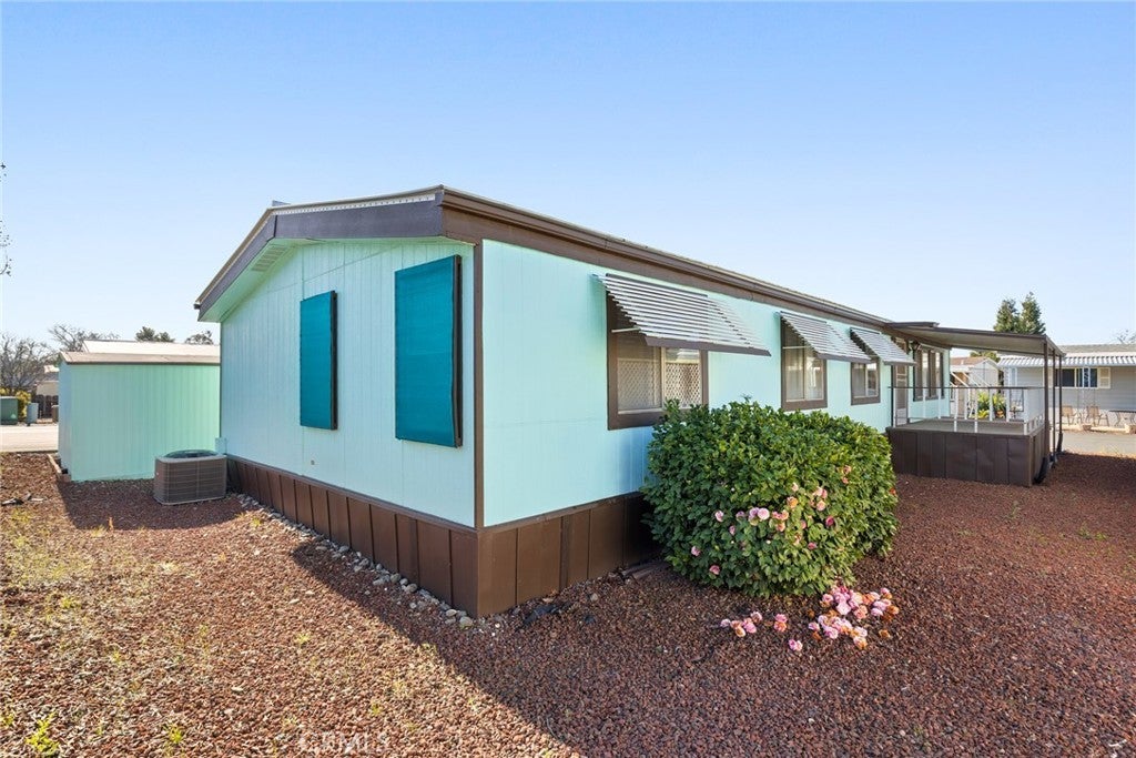 Spacious 3-bedroom, 2-bath mobile home located in the desirable Pleasant Valley Mobile Estates. This well-maintained home offers an inviting floor plan with a separate dining room featuring a built-in hutch, an expansive living room, and a cozy family room—perfect for both entertaining and everyday living. Ceiling fans throughout enhance comfort year-round. The generous primary suite provides a relaxing retreat, and the convenience of indoor laundry adds to the home’s functionality. Lovingly cared for over the owner’s 30-year tenure, the home also features a newer HVAC system, updated flooring in the hall bathroom and laundry room, and window coverings throughout. All appliances are included, making this property truly move-in ready. Enjoy outdoor living with both large front and back porches—ideal for morning coffee, evening relaxation, or hosting friends and family. The covered carport includes an access ramp leading directly to the back porch, providing added convenience and ease of entry. A spacious storage shed offers even more functionality. Community amenities include a beautiful pool, BBQ patio area, and an updated recreation room. Ideally situated near local parks, next door to the Chico Racquet Club, and just minutes from shopping, this is a fantastic opportunity to enjoy comfort, convenience, and community living in a prime location at an affordable price.