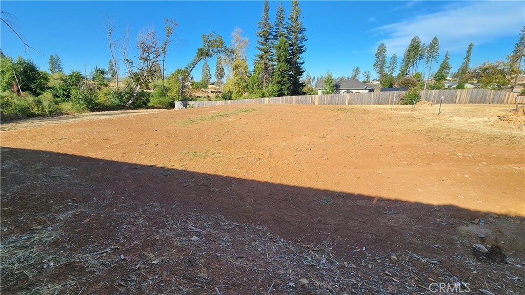 YOU WILL LOVE THIS READY-TO-BUILD PARADISE LOT located in the Highland Gardens Subdivision at the end of a quiet street! No through traffic! This very usable, flat .52-acre parcel offers an ideal setting for your future home with thoughtful improvements already in place! The property features a good condition perimeter wood fencing with gate for added security. Owner also had fill delivered and had it compacted where previous home had sat. Previously there was a 3 bedroom / 2 bath home with 1718 sq ft and detached garage, which can help on new permitting costs. A conveniently located fire hydrant sits on the corner of the lot, and the very flat topography makes access and building more straightforward for contractors and owner-builders alike. The lot is clear of all debris and has great defensible space! The Paradise Irrigation District bills have been kept up to date. The location offers quick access to local amenities in Paradise, with shopping, services, and schools just a short drive away, and Chico approximately 15 minutes down the hill for commuting, employment, dining, and entertainment. Enjoy the peaceful setting with a nearby creek adding a touch of nature and tranquility to the surroundings. With its quiet setting, build-ready improvements, and easy access to both Paradise and Chico, this property is a great opportunity to create your custom home in a welcoming, fast-growing community!