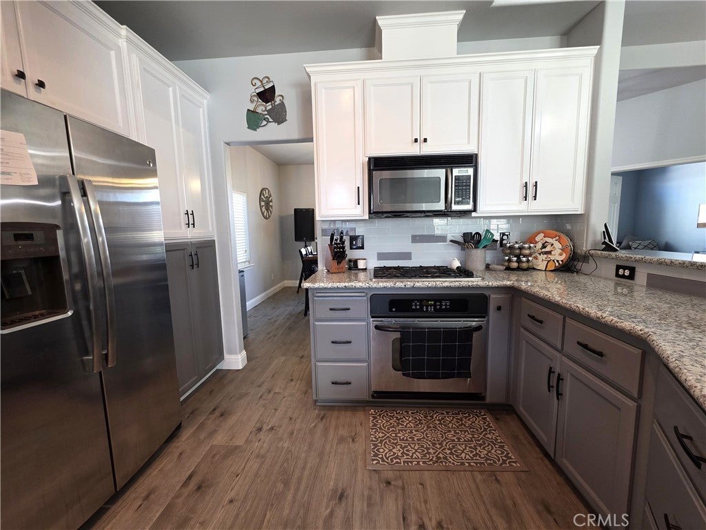 Welcome to this beautifully updated 4-bedroom, 2-bathroom home with over 2,000 sq ft of living space including an attached 3 car garage! Recently painted inside and out with updated flooring throughout, this home features a spacious kitchen with granite countertops, stainless steel appliances, a raised bar for additional seating, and plenty of cabinet space. Enjoy a formal dining room for gatherings and a cozy living area with a custom fireplace. The individual laundry room adds convenience. Step outside to your private backyard oasis with a pool and built-in deck, fully fenced and perfect for pets. Front yard offers great curb appeal plus RV parking space. Additional highlights include garden sheds for extra storage and SOLAR for energy efficiency! Buyers to verify any and all information to their satisfaction.