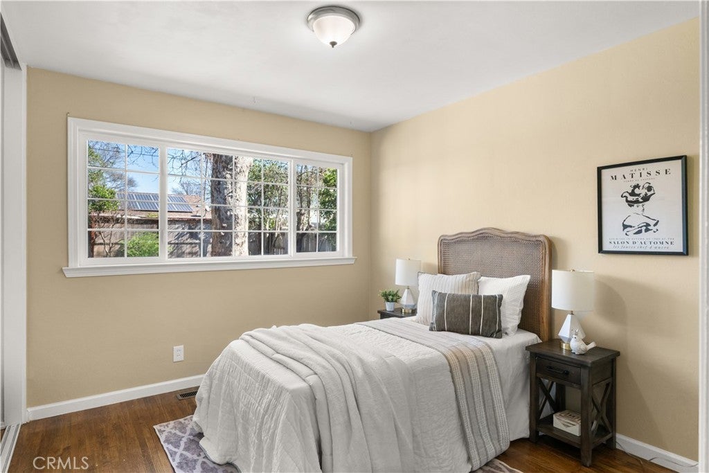 Welcome to 444 Lilac Lane! This charming 3-bedroom, 2-bathroom classic 1960s home sits on a quiet cul-de-sac just moments from Bidwell Park. Inside you are greeted by rich original hardwood floors flowing through the living space and bedrooms along with fresh interior paint. The home features dual-pane windows, a cozy wood-burning fireplace insert in the living room, and a sliding glass door that opens to a spacious screened-in conservatory —perfect for enjoying Chico’s beautiful spring mornings and warm summer evenings. In the kitchen you will find new vinyl flooring, white cabinetry, granite counters, and a charming breakfast nook. Down the hall are two generously sized bedrooms, a guest bathroom, and linen storage, while the light-filled primary bedroom offers mirrored closet doors and an ensuite bathroom. Outside, a large concrete patio and private backyard with mature landscaping create great space for relaxing or entertaining. With recent updates and major improvements completed, this home offers true move-in ready comfort in an unbeatable park side location.