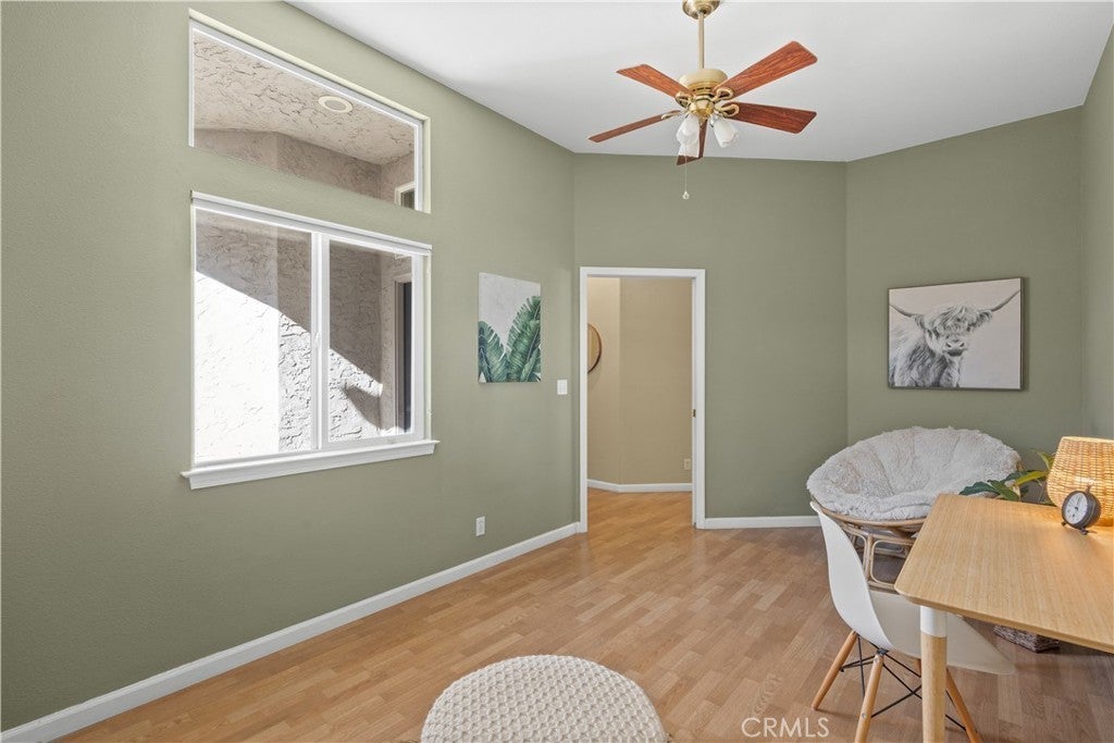 • Interior FeaturesCeiling Fan(s), Separate/Formal Dining Room, Eat-in Kitchen, High Ceilings, Solid Surface Counters, All Bedrooms Down, Main Level Primary, Walk-In Closet(s)