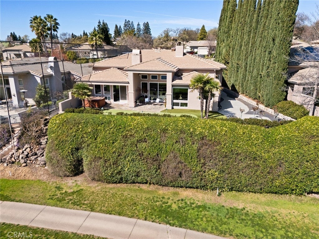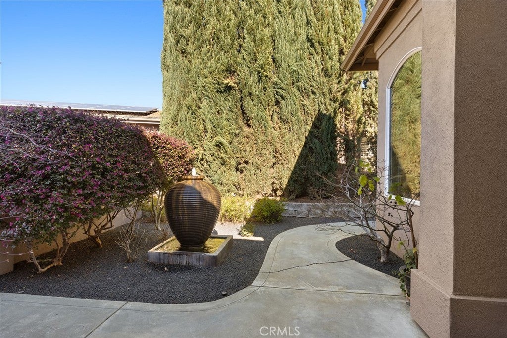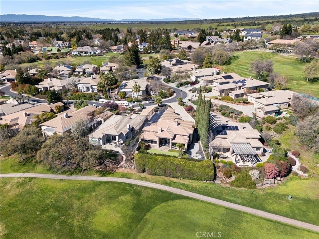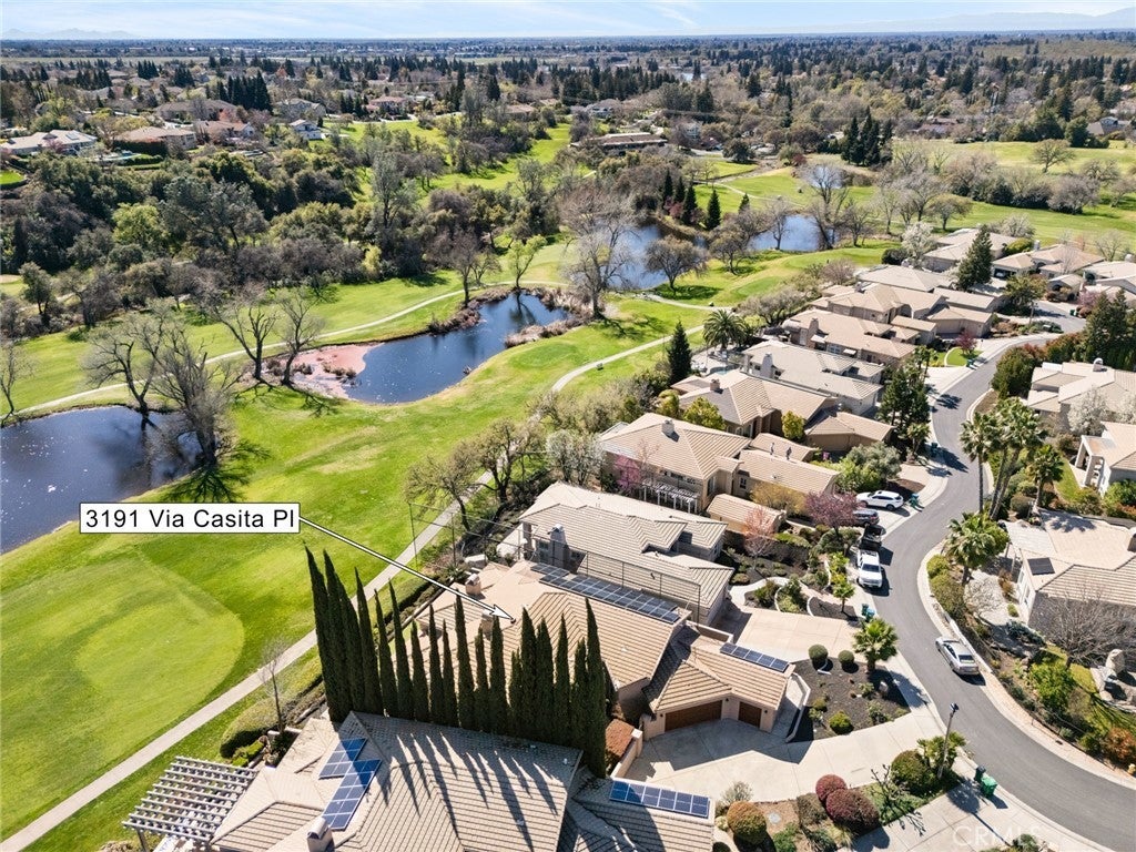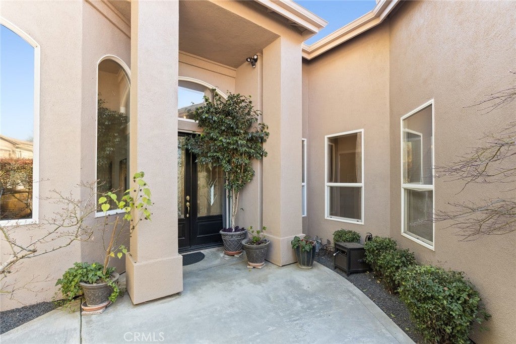 Located in the exclusive Arroyo Greens enclave within the gated Canyon Oaks community, this 3-bedroom, 3-bath home sits along the 5th hole of Canyon Oaks Golf Course and enjoys beautiful views of the surrounding foothills. A welcoming front courtyard patio with fountain creates a peaceful entry. Large windows bring in abundant natural light, and the kitchen and living room are positioned to capture the golf course views, creating an open and inviting living space. The living room features a fireplace, adding warmth and character. The spacious kitchen includes a flush-mounted Sub-Zero refrigerator and generous counter space, while the dining area features an extra-large temperature-controlled wine refrigerator. A whole-home audio system with speakers throughout the interior and extending to the back patio enhances everyday living and entertaining. The third bedroom includes a Murphy bed, allowing the space to function as a guest room or easily convert to an office or den. The main bedroom includes its own fireplace, creating a comfortable retreat. Enjoy the back patio with hot tub and views of the fairway and surrounding foothills. The property includes custom golf-ball protective fencing designed to help safeguard the home while maintaining the views. The low-maintenance yard features a private putting green. Additional highlights include an owned solar system, whole house fan, water softener, natural gas BBQ connection, and an attached garage with space for cars and a golf cart. A great opportunity to enjoy golf course living in one of Canyon Oaks’ most desirable neighborhoods.
