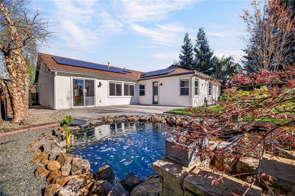 Stunning 4-Bedroom Home with 3-Car Garage — Indoor/Outdoor Entertainer’s Dream Step into this beautifully maintained, light-filled home featuring formal living and dining rooms plus a spacious family room with a cozy fireplace. The expansive kitchen offers abundant storage, a pantry, and a dining nook that flows to the family room — perfect for everyday living and entertaining. Luxury vinyl flooring and soaring ceilings run throughout, complementing large, comfortable bedrooms. The primary suite includes a walk-in closet and direct access to the backyard. Outside, enjoy a serene waterfall with a koi pond, a generous patio for gatherings, an extra storage shed, and plenty of room to add a pool. Solar panels provide energy savings and peace of mind. A three-car garage completes this exceptional package. Don’t miss this rare combination of elegant interior spaces and peaceful outdoor living. Schedule a showing today.