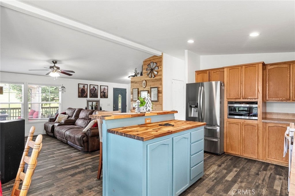 If you have been looking for a property with a little land and room to breathe, this 3 bedroom, 2 bath home on over 3 acres deserves a look. Tucked back from the road for privacy, the 1,809 sq ft layout offers spacious rooms, high ceilings, and attractive wood-look ceramic tile flooring throughout, creating a comfortable country feel with the convenience of town nearby. The large kitchen features a center island, pantry, and open connection to the living room, where a wood-burning fireplace anchors the space. A separate family room adds flexibility and could serve as a den, home office, hobby room, or additional gathering space. The primary suite offers a generous retreat of its own, with space for an office, den, or home gym, along with a large bath featuring dual sinks, a garden tub, and separate shower. The secondary bedrooms are well sized with high ceilings and ceiling fans, and the guest bath also includes dual sinks and ample cabinetry, making busy mornings a little easier. Outside, you will find underground utilities, public sewer, sought-after South Feather Water, a large front deck, a single horse stall, and a seasonal creek that runs through the property. The upper corner of the parcel near the street may also lend itself to horses or possible additional use, subject to buyer investigation. A hard-to-find small acreage property with space, privacy, and versatility. Call your favorite REALTOR® for a showing today!