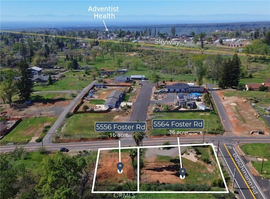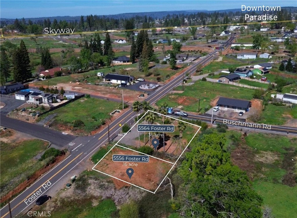 Opportunity awaits with two adjoining parcels being sold together in Lower Paradise! Located at 5564 & 5556 Foster Rd, these properties offer a combined .52 acres of mostly flat, usable land with excellent access to both Paradise and Chico. The .36 acre corner parcel at 5564 Foster features a functioning septic tank and leach field, providing a strong starting point for your future build. The neighboring .16 acre parcel at 5556 Foster includes a good leach field, though the septic tank will need replacement. Both parcels currently have active PID accounts, which may help reduce certain rebuilding costs. With two lots side by side, this property presents a unique opportunity to build two homes at the same time, potentially lowering construction costs by sharing mobilization, contractors, and planning. The layout also lends itself well to multigenerational living, allowing family members to live close while maintaining separate homes and privacy. Located in Lower Paradise, the property offers a quick and convenient commute to Chico while enjoying the quiet setting and continued rebuilding of the Paradise community. Whether you're looking to build side-by-side homes for family, develop both lots together, or invest for the future, this dual-parcel opportunity offers flexibility and value in a desirable location.