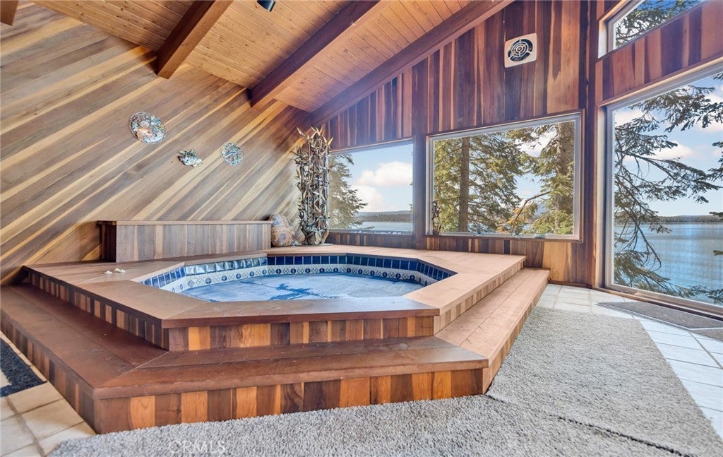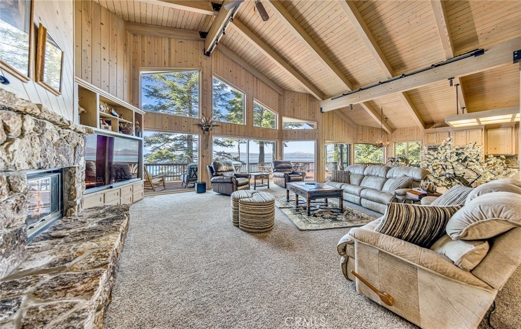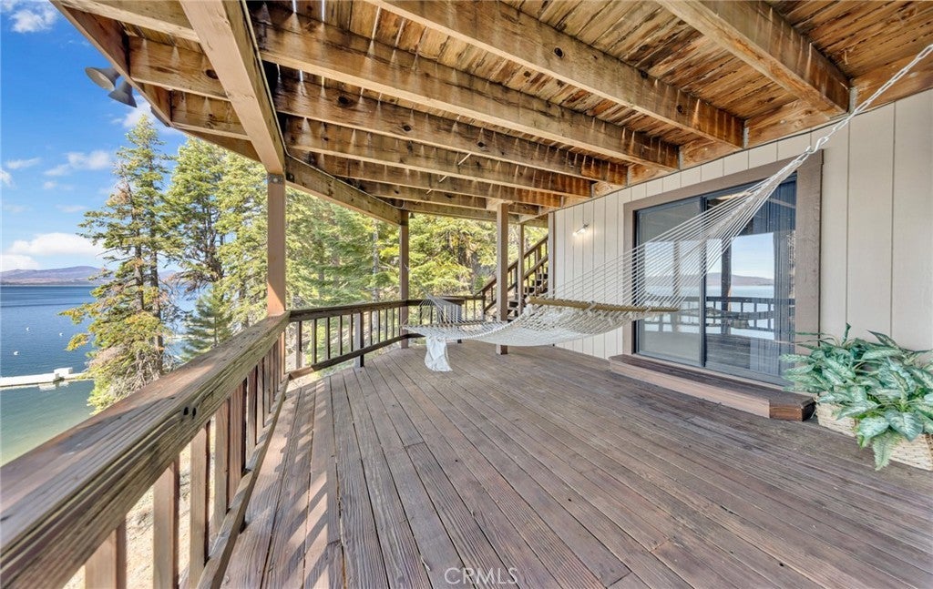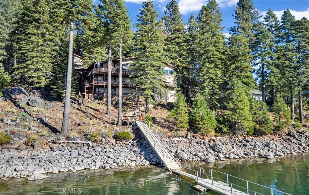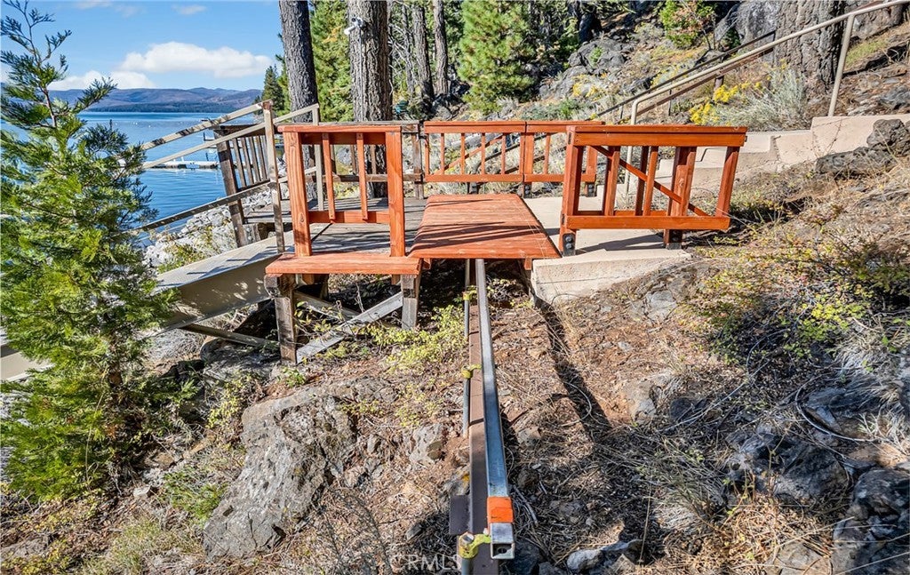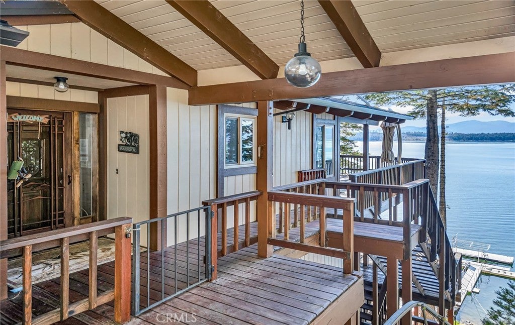 This stunning lakefront home offers panoramic views of Lake Almanor and Mount Lassen, just steps from Recreation Area 2 in Lake Almanor Country Club. With three levels of waterfront decks, a deep-water lot, and a large solar U-shaped dock with a boat slip, two wave runner slips, and two buoys, it’s the ultimate lakefront retreat. A 3-seat tram transports you and your groceries to the lake, and covered, lighted walkways provide year-round comfort. Inside, you'll find exquisite woodwork and master suite with 180-degree lake views, a cozy fireplace, and a luxurious-suite bathroom. The main floor also has a spacious deck and a jacuzzi room with redwood walls. The Great room features two-story windows, another fireplace, and seamless flow into the kitchen with granite countertops, stainless steel double ovens, and modern finishes. The lower level includes three bedrooms, two with deck access. Above the detached 2-car and golf cart garages is a charming apartment with lake views, two bedrooms, a full kitchen, and a wood stove. Enjoy amenities like summer bandshell concerts, pickleball, tennis, and more in this family-friendly community. This property is a true lakeside paradise, perfect for making lifelong memories!