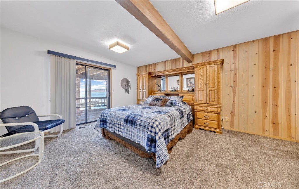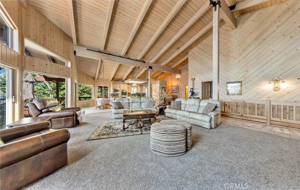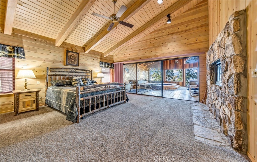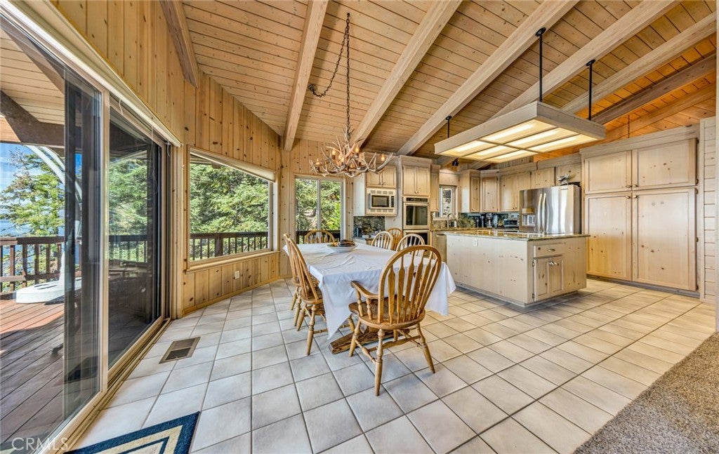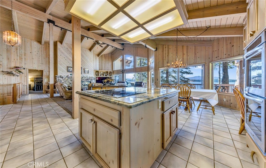 • Interior FeaturesBeamed Ceilings, Ceiling Fan(s), Cathedral Ceiling(s), Eat-in Kitchen, Granite Counters, Living Room Deck Attached, Open Floorplan, Bedroom on Main Level, Main Level Primary, Walk-In Closet(s), Furnished, Track Lighting