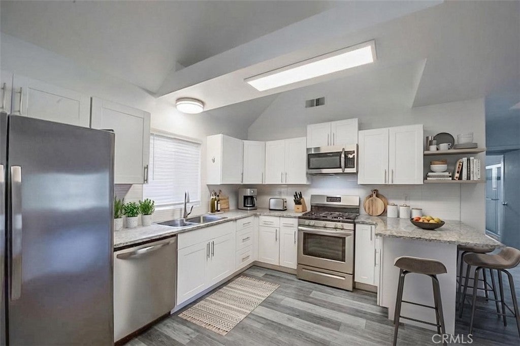 Not to be missed - this totally Updated & Turnkey home! This 1546 sq ft, 4 Bed - 2 1/2 Bath home with a cathedral ceiling feels open & airy. Recent upgrades include: Stainless Steel Appliances, Granite Kitchen Counters, Upper & Lower Cabinets; Bathroom Vanities with Tile accents, Tile Shower & Bath Tub surround; Vinyl Plank Flooring thru-out 1st Floor; New Paint Thru-out; Hot Water Heater; Ceiling Fans; Whole House and a new HVAC 2023. Full Cement Patio in Backyard; Tuff-Shed for extra storage. Separate Laundry Room – Washer & Dryer included. Drought tolerant yards, super low maintenance. 2 Car garage has finished walls and painted floor. Conveniently located near Schools & Shopping. Call your Realtor today for a tour.