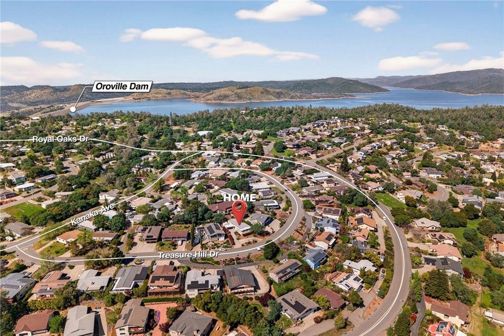 Wake up to panoramic views of Lake Oroville and the surrounding foothills from your own wrap-around deck——ideal for relaxing mornings or evening sunsets. This is the lifestyle you’ve been waiting for. This 2 bed, 2 bath home offers 1,440 sq ft with an open kitchen, pantry, eating bar, and multiple living spaces including a family room just off the kitchen—perfect for gathering and entertaining. The spacious primary suite features a large bathroom with a beautiful soaking tub for ultimate relaxation. Step outside and enjoy a fenced yard plus a large metal workshop/garage—ideal for storage, hobbies, or projects. Homes with this kind of view and versatility don’t come along often—don’t wait, come see it for yourself.