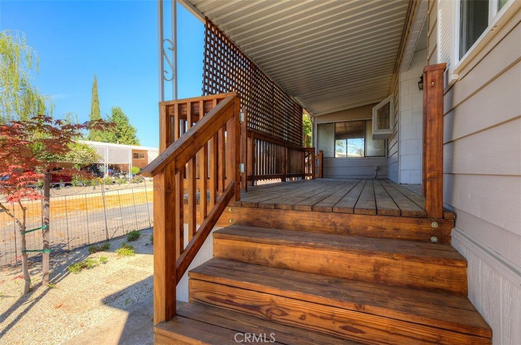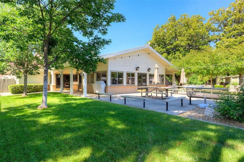 This charming double-wide mobile home is nestled in the highly sought-after Chico Mobile Country Club, a peaceful and friendly 55+ community. Ideally located on the outskirts of Chico, it offers a tranquil setting while still being just minutes from dining, shopping, and the vibrant Downtown Chico scene. This home features an attached covered carport, newer exterior paint, and stunning front porch decking that creates a warm and inviting first impression. Enjoy a generously sized enclosed sunroom, a fenced yard, and a serene private patio area tucked just behind the carport fencing—perfect for relaxing or savoring a quiet morning outdoors. The kitchen is the true highlight, boasting abundant cabinet and counter space, a gas stove, beautiful tile countertops, a stylish backsplash, and a charming garden window that fills the space with natural light. The master bedroom feels like a retreat, complete with an oversized closet and a luxurious en-suite bathroom featuring double sinks, a large soaking tub, and a walk-in shower. The second bedroom offers a spacious closet and its own private bathroom, providing comfort and convenience for guests or additional living space. Mature landscaping enhances the home’s charm while still leaving room to make it your own, with prime location directly across from the clubhouse—truly making this home a gem. Residents also enjoy access to community amenities including a pool, hot tub, gym, RV parking, and more. This community offers the perfect blend of convenience, leisure, and a true sense of connection. Call today to schedule your own private tour.