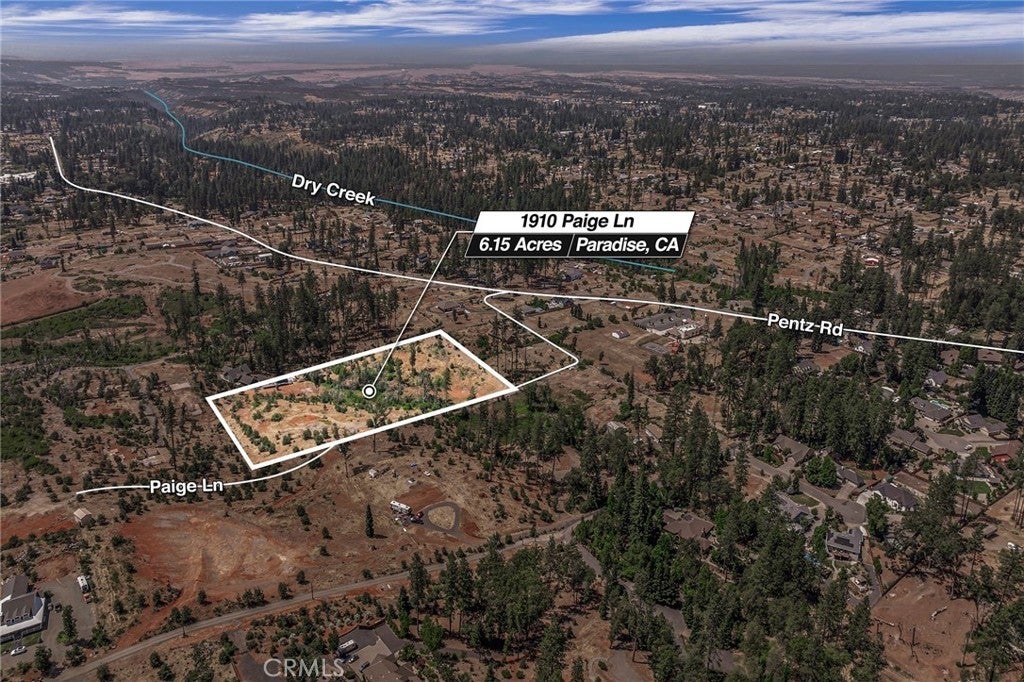 Rare Central Paradise Location for this 6.15 acre lot. Feels like your out of town but you can be grocery shopping in 5 minutes! Fantastic Year Around Creek!!! Imagine driving down your own private lane, across your creek, and up to your homesite nestled on a knoll of your own 6+ view acres of Paradise... so many possibilities. Motivated Seller. Your own compound or modern homesteading, an amazing opportunity to make all of your dreams come true. Seller has water hooked up. The property had two septic systems at the time of the Camp Fire. The home lost was 1,414 square feet. The property is Zoned RR-1 (Rural Residential 1 acre minimum, possible to be able to lot split) This zoning is perfect for horses, chickens, livestock and all your furry friends. a variety of other animals. Beautiful views of surrounding hills and valleys. Discover the variety of flora and fauna including the wildflowers, bulbs, and ferns. Great place to raise your family and room for all your furry friends. Beautiful mountain sunrise and sunsets! Plenty of room to ride your ATV or Quads around the property. Paige is also a paved road! This is a special property.