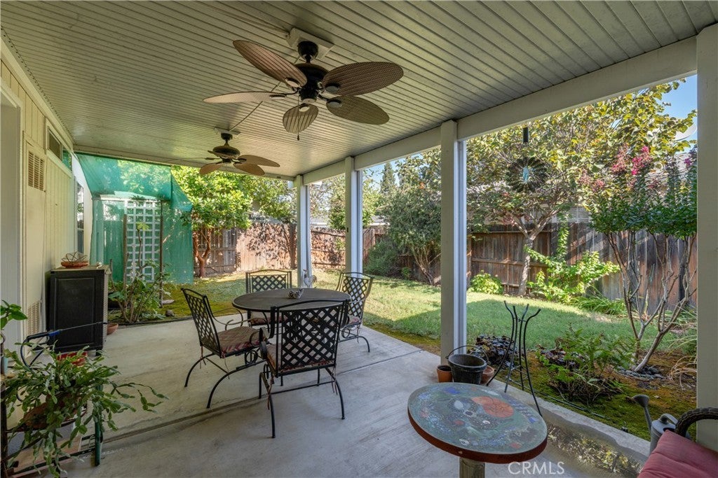 Welcome to Springfield Manor, Chico's premier 55+ gated community! This beautifully maintained manufactured home offers the perfect blend of comfort, style, and convenience. Located on a quiet street with stunning curb appeal, this home features low-maintenance artificial turf landscaping in the front and a covered patio in the back—ideal for relaxing or entertaining year-round. Step inside to a bright open-concept layout with a modernized kitchen and bathrooms, thoughtfully updated with contemporary finishes. The kitchen includes newer appliances, plenty of cabinet space, and sleek countertops, opening seamlessly to the dining and living areas. Enjoy two spacious bedrooms, both with walk-in closets, ample storage, and a 2-car garage—a rare find in community living. The sprinkler system keeps your landscaping fresh with minimal effort. Community amenities include a pool, clubhouse, and fitness center, offering the perfect lifestyle for active adults. Whether you're enjoying a workout, joining neighbors for social events, or simply unwinding at home, Springfield Manor has it all. Don't miss this opportunity to enjoy easy, low-maintenance living in a vibrant and secure community!