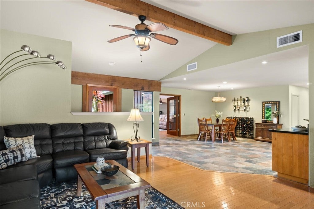 • Interior FeaturesBeamed Ceilings, Breakfast Bar, Built-in Features, Ceiling Fan(s), Separate/Formal Dining Room, Granite Counters, High Ceilings, Open Floorplan, Pantry, Recessed Lighting, All Bedrooms Down, Main Level Primary, Walk-In Closet(s)