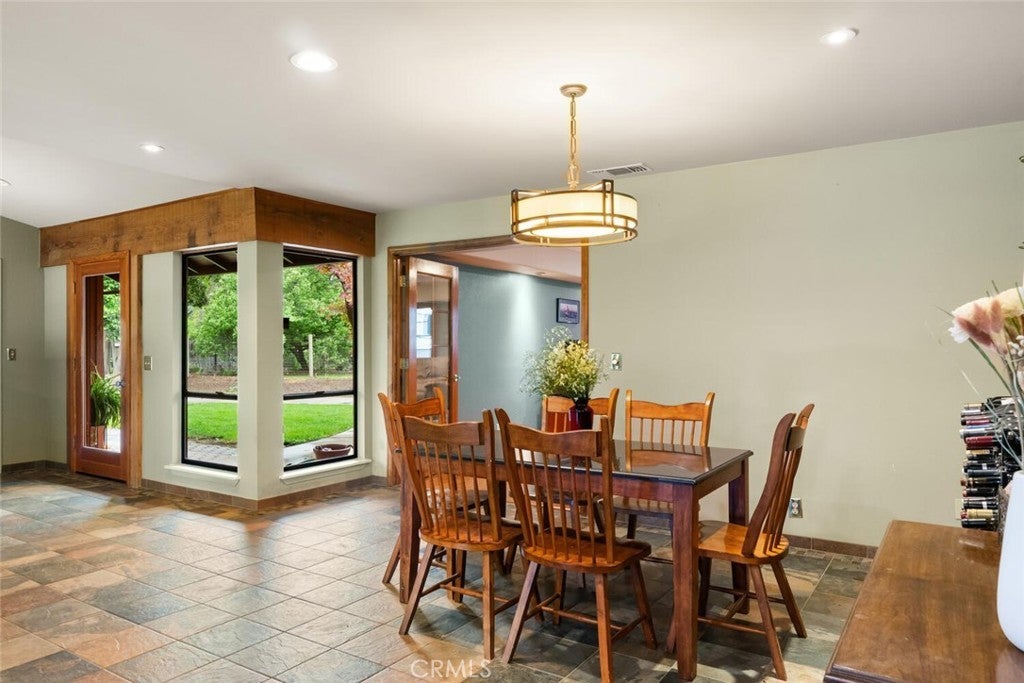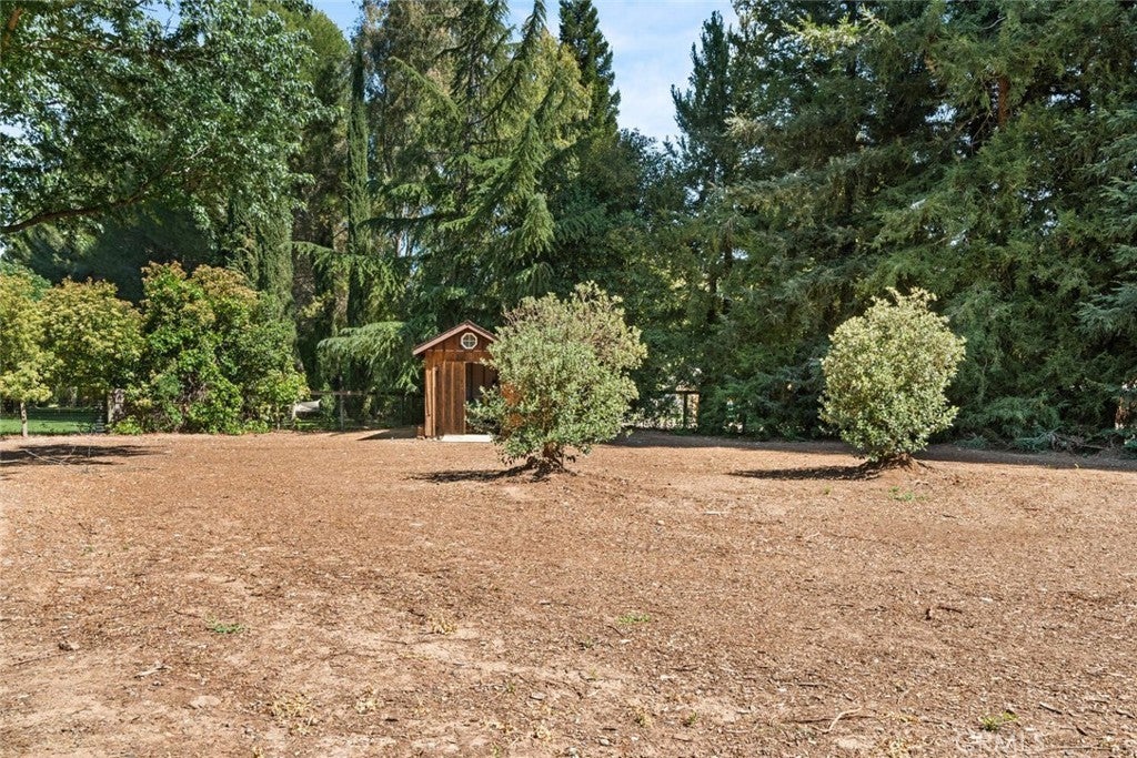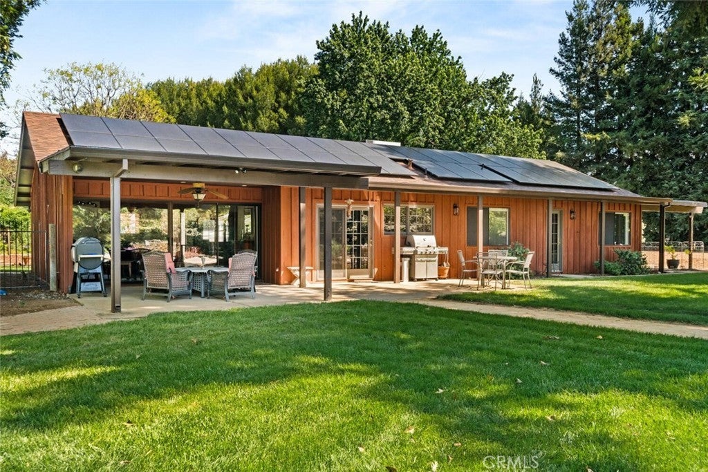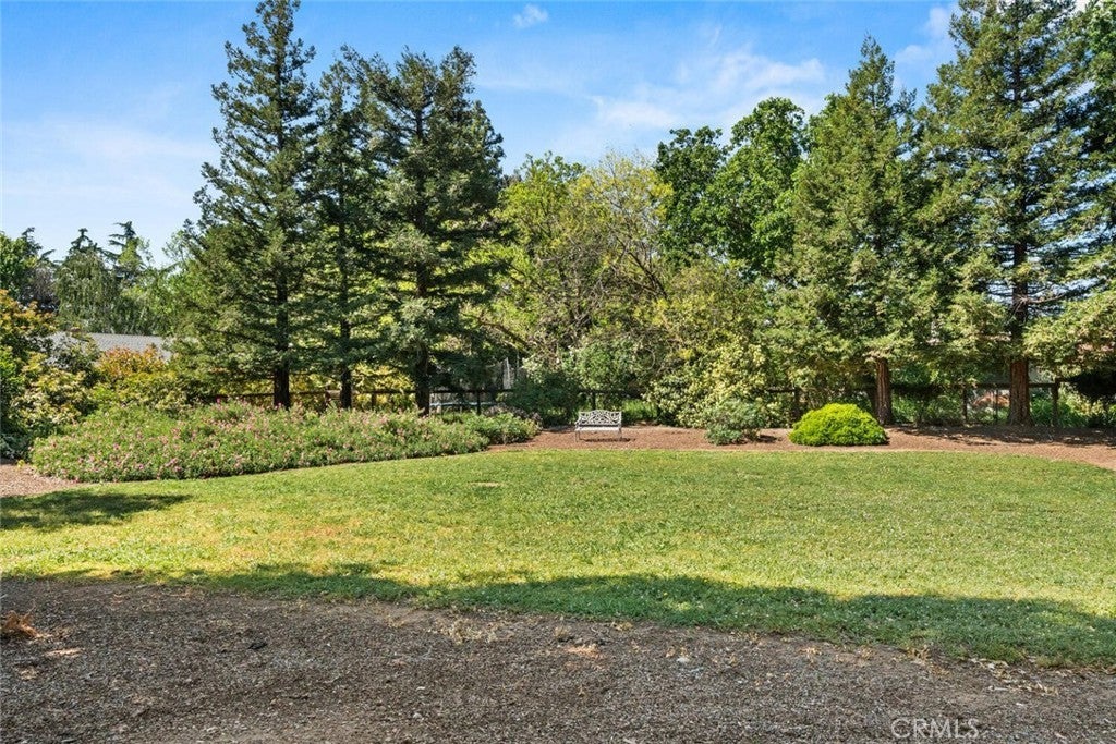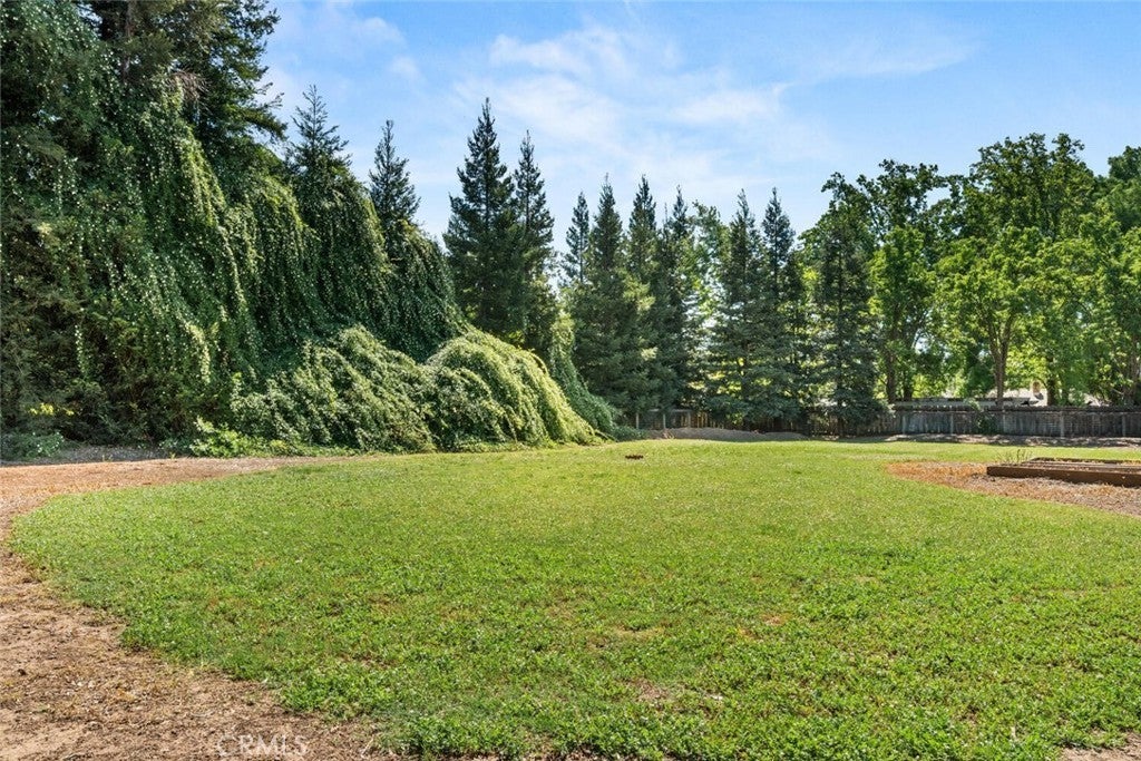 Bring the toys, the hobbies, and the pool floats—this 1.5-acre property offers OWNED SOLAR, a HUGE POOL with diving board, and a 1,000 SQFT DETACHED SHOP is a must see! Set at the end of a cul-de-sac, this spacious 2,508 sq ft 4-bedroom, 2-bath home offers the perfect blend of comfort, space, and privacy. Inside, the open floor plan features tall, beamed ceilings, recessed lighting, and a blend of hardwood and tile flooring throughout—hardwood in the living and family rooms, with tile throughout the rest of the home. The upgraded kitchen includes granite countertops, a center island with breakfast bar, and flows seamlessly into the living room with a dramatic beamed ceiling and large sliding glass door providing backyard access. A spacious separate family room or bonus room with coffered ceilings offers additional living or entertaining space. Down the hall are three guest bedrooms and a beautifully updated guest bath with granite countertops, tiled walk-in shower, and classic clawfoot tub. The primary suite features patio access, a large walk-in closet, and an updated bath with dual vanity, granite countertops, and walk-in shower. Step outside to a tranquil backyard oasis, featuring mature trees, expansive green space, and beautifully landscaped grounds. The expansive pool doubles as a lap pool and features a diving board, offering a refreshing escape from the Chico heat. Plenty of room remains for 4-H projects, a garden, or even a future pickleball court. Double gates on both sides of the property allow easy trailer or RV access, while the 1,000 sq ft detached shop—complete with a half loft for significant additional storage—provides versatile space for hobbies, storage, or a dedicated workshop, plus a large shed for storing mowers and garden equipment. Come see the potential of this versatile property today!