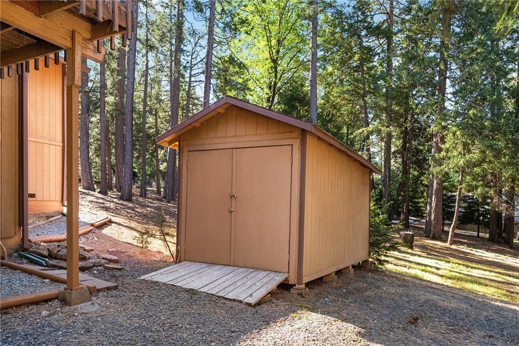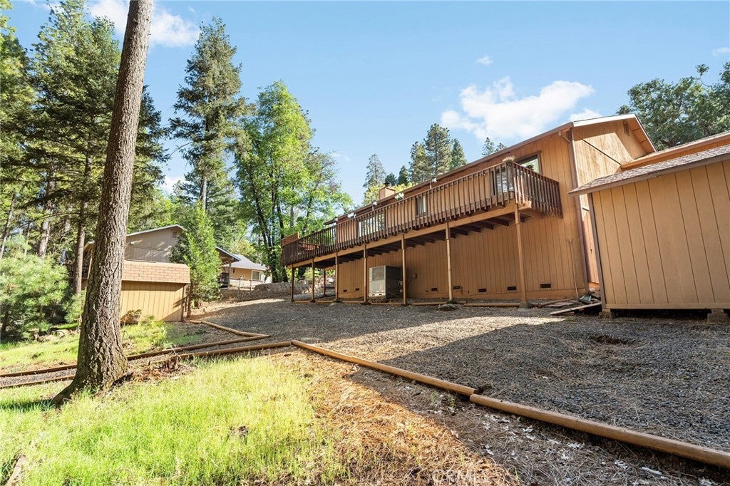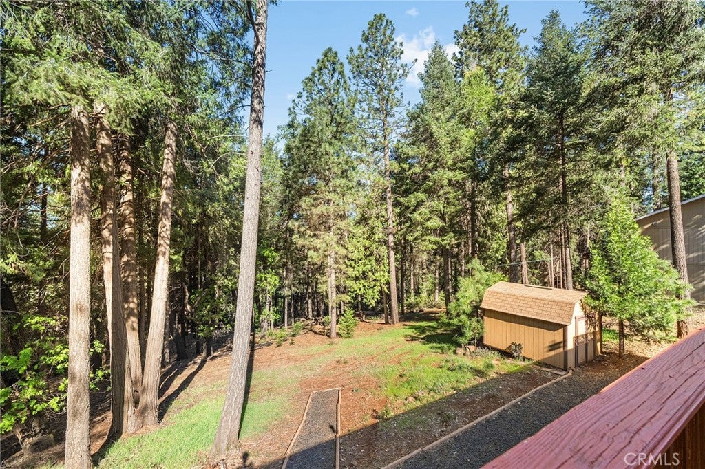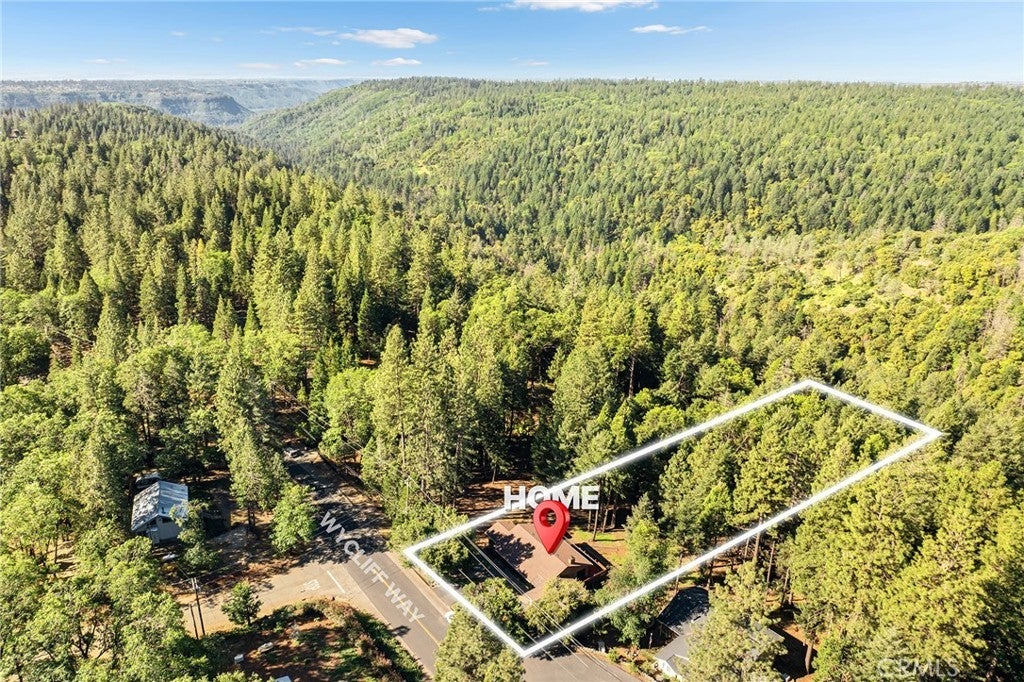 Amazing Custom Built home on 0.75 ACRES!! Fantastic views of the beautiful evergreen forest and canyon. Pride in ownership shows throughout with the home with a 2 YEAR OLD ROOF and a NEW HVAC System. This custom home was built with 2x6 WALLS! Location is within WALKING distance of the Paradise Pines Property Owners Association. Upon entering this 3 bedroom 2 bathroom home, through the custom stained-glass front door, you are greeted by a spacious custom ATRIUM that overlooks the living room. The living room features a custom 8x4ft window showcasing stunning Magalia views, a free standing wood burning fireplace set on tile with a custom rock backsplash, and a built-in bookcase accentuated by directional lighting. Sliding glass doors open to an over 500 sq ft entertaining deck, plenty of room for all your family and friends and perfect for enjoying the scenery. The kitchen is highlighted by a stained-glass light, plantation shutters over the sink and granite countertops. It includes all black appliances, featuring a glass cooktop and NEW double ovens. Adjacent to the kitchen is the laundry room, complete with a full-sized washer and dryer, overhead cabinets, and a pantry for extra storage. The dining area features a 6ft breakfast bar that looks into the kitchen and an etched glass window overlooking the entryway. Down the hallway, you will find a guest bathroom, two bedrooms, a linen closet, and the primary bedroom. Both bathrooms include cultured marble showers and matching countertops, creating a cohesive and polished look. The garage offers a bonus storage room, epoxy flooring, and a dedicated workbench area for projects. Additional upgrades include 2 wood sheds, one of which has electricity, and every room has remote controlled ceiling fans. Being set in the PPOA, this home offers scenic walking trails, pool and spa, lounge, billiards room, outdoor activity areas, social spaces, versatile sports courts, and a variety of engaging classes ranging from sewing to ceramics—providing a vibrant sense of community and lifestyle.