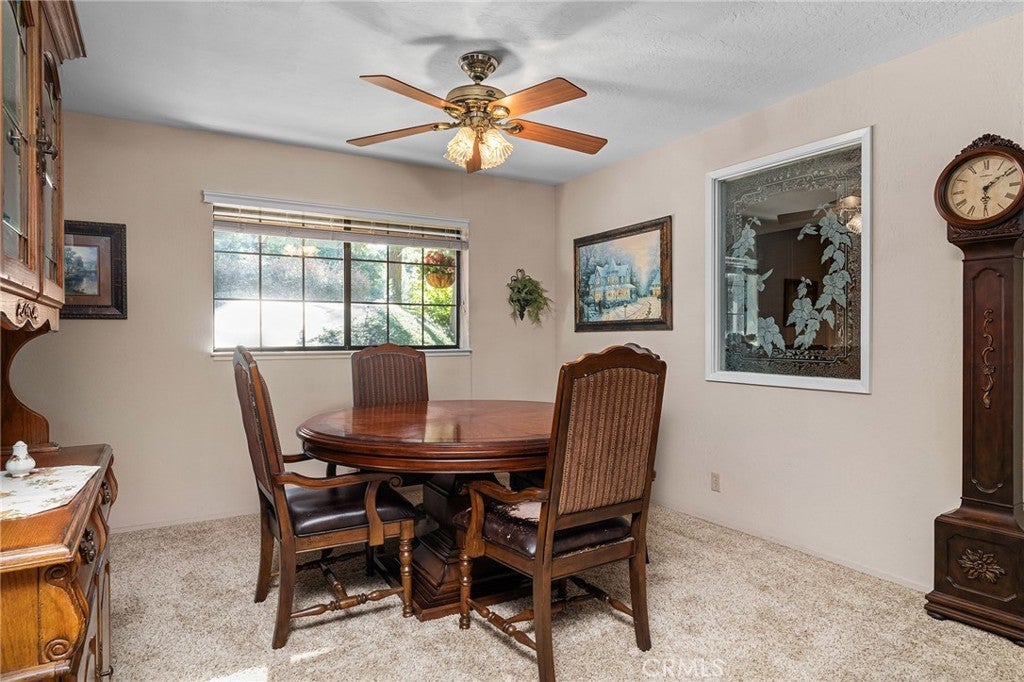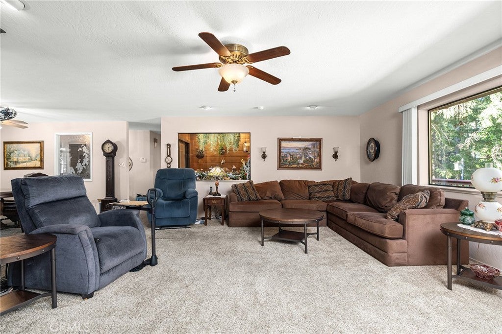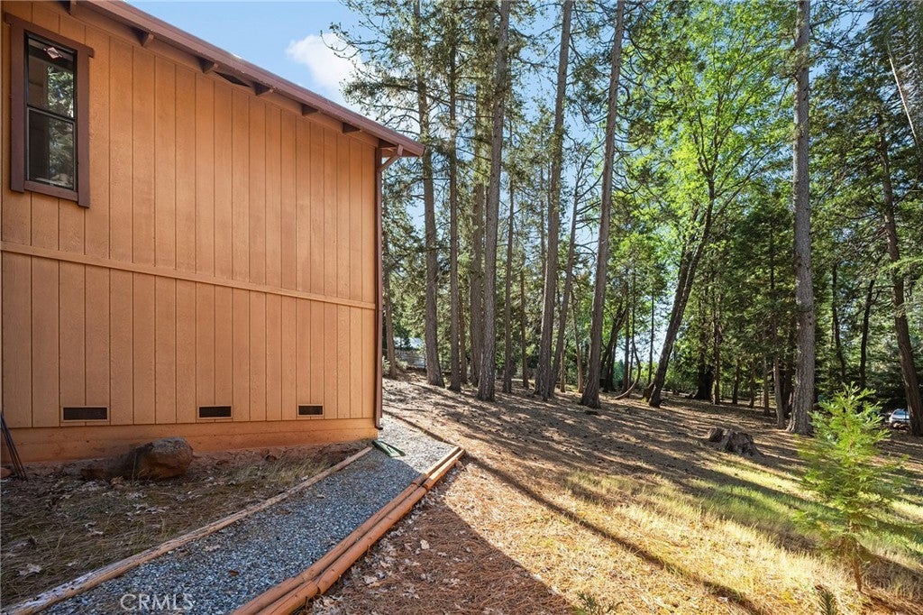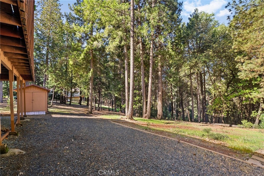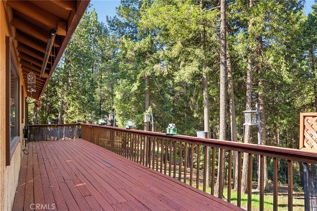 Amazing Custom Built home on 0.75 ACRES!! Fantastic views of the beautiful evergreen forest and canyon. Pride in ownership shows throughout with the home with a 2 YEAR OLD ROOF and a NEW HVAC System. This custom home was built with 2x6 WALLS! Location is within WALKING distance of the Paradise Pines Property Owners Association. Upon entering this 3 bedroom 2 bathroom home, through the custom stained-glass front door, you are greeted by a spacious custom ATRIUM that overlooks the living room. The living room features a custom 8x4ft window showcasing stunning Magalia views, a free standing wood burning fireplace set on tile with a custom rock backsplash, and a built-in bookcase accentuated by directional lighting. Sliding glass doors open to an over 500 sq ft entertaining deck, plenty of room for all your family and friends and perfect for enjoying the scenery. The kitchen is highlighted by a stained-glass light, plantation shutters over the sink and granite countertops. It includes all black appliances, featuring a glass cooktop and NEW double ovens. Adjacent to the kitchen is the laundry room, complete with a full-sized washer and dryer, overhead cabinets, and a pantry for extra storage. The dining area features a 6ft breakfast bar that looks into the kitchen and an etched glass window overlooking the entryway. Down the hallway, you will find a guest bathroom, two bedrooms, a linen closet, and the primary bedroom. Both bathrooms include cultured marble showers and matching countertops, creating a cohesive and polished look. The garage offers a bonus storage room, epoxy flooring, and a dedicated workbench area for projects. Additional upgrades include 2 wood sheds, one of which has electricity, and every room has remote controlled ceiling fans. Being set in the PPOA, this home offers scenic walking trails, pool and spa, lounge, billiards room, outdoor activity areas, social spaces, versatile sports courts, and a variety of engaging classes ranging from sewing to ceramics—providing a vibrant sense of community and lifestyle.