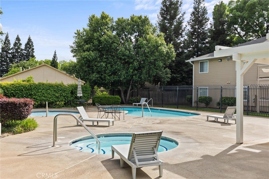 Welcome to your slice of perfection—a rarely available, move-in ready, ground-floor condo offering 3 spacious bedrooms and 2 full bathrooms, all without a single step to climb. Tucked away in the serene and quiet Sunridge gated community, this is the ideal sanctuary for anyone seeking convenience and comfort. Step inside to a home that feels new. You'll immediately notice this unit is perfectly positioned to be shaded in the summer, beautiful fresh paint, and brand new carpet throughout. The open-concept kitchen is a features granite countertops, a stylish tile backsplash, and newer fridge, & dishwasher. Inside laundry enhances the ease of living. The bedrooms are generously sized, with the master suite serving as a private retreat, peacefully situated at the end of the hallway. Both full bathrooms have been updated with contemporary lighting and have granite vanity tops. The master bathroom boasts a walk-in shower, while the guest bath provides a convenient tub/shower combination. Notice that most of the rooms have a ceiling fan that is newer. You have a small private patio that includes a storage closet. Location is everything, and this condo is prime. It is close to the sparkling pool and spa, making it feel like your own private backyard oasis. Plus, enjoy the ultimate peace of mind knowing the dedicated HOA takes care of everything, from yard maintenance and pool upkeep to building maintenance (they recently painted the buildings and replaced the parking lot). Everything moves like clockwork. Even trash and recycling are collected a few times a week for effortless living. Your assigned carport parking spot is conveniently located right outside your front door. Commuting is a breeze with easy freeway access, and you’re minutes from every necessity, including Costco, the Chico Mall, Target, dining, and transportation. Don't miss this rare opportunity for affordable, perfect, and carefree living!