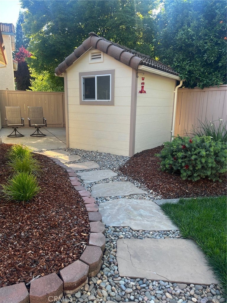 Have you been searching for a home that is clean, updated, light-filled, and designed for effortless living? This beautifully appointed Mediterranean residence is exactly what you’ve been waiting for. From the moment you arrive, the gated front courtyard sets the tone—featuring freshly refreshed landscaping with sculptural succulents and a serene, manicured garden filled with low-maintenance flowering plants. It’s a peaceful, welcoming space that invites you to pause and take it all in. Step through the gate and into the home, where a charming storm door opens to a stunning new front entry. Inside, the spacious great room immediately draws you in, filled with natural light and thoughtfully designed sightlines that lead your eye straight through to the covered back patio and lush outdoor living spaces beyond—creating a seamless indoor-outdoor lifestyle that’s both relaxing and refined. The thoughtfully designed floor plan offers a private primary suite set apart from the other bedrooms—creating a true retreat. Complete with its own sliding glass door to a secluded patio, it’s the perfect spot for morning coffee or unwinding in the evening. The spacious en-suite bathroom and generous walk-in closet add both comfort and functionality. In addition to three well-appointed bedrooms, the home features a large, versatile office—ideal for working from home, a creative studio, or a cozy den. Whether you need space for productivity or relaxation, this room easily adapts to your lifestyle. The current owners have made numerous valuable upgrades, including a tankless water heater, water softener, durable and stylish LVP flooring, and new Low-E sliding glass doors that enhance both energy efficiency and natural light. For added convenience, this exceptional home also includes a washer, dryer, and refrigerator—making it truly move-in ready. The backyard continues the home’s theme of tranquility and thoughtful design. Beautifully landscaped with peacefulness in mind, the stunning Japanese maple and carefully selected plantings provide soft color and natural beauty in a serene, understated setting—perfect for relaxing or entertaining. Additional highlights include a charming storage shed, custom-built to match the home’s architecture, as well as abundant cabinetry in the garage offering exceptional storage for tools, hobbies, and all your extras.