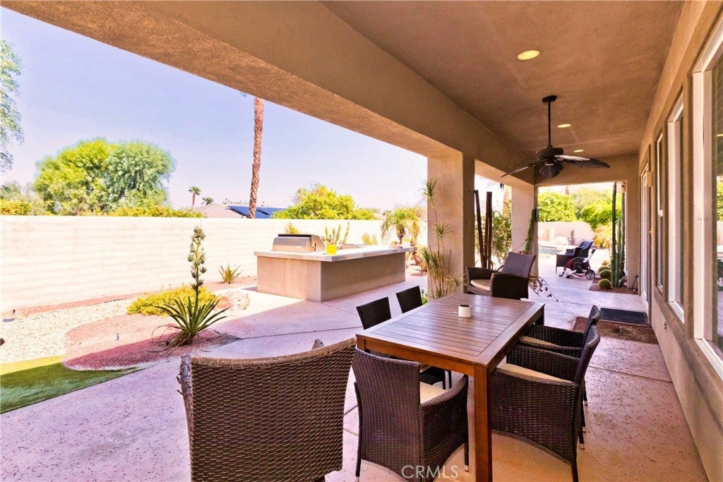 Pricing reflects the lowest rates of the year; rates may be higher during peak season and other months. Discover the epitome of California luxury living at 134 Tesori Dr, nestled within the prestigious gated enclave of Brenna at Capri in Palm Desert. This single-level contemporary gem, boasting a solar system, redefines the meaning of "home sweet home." The moment you step through the front door, you'll be captivated by the spacious, sunlit interior, designed for seamless entertaining and comfortable living. The open concept floor plan creates a welcoming atmosphere that will leave you and your guests in awe. The focal point of this remarkable residence is the backyard oasis, reminiscent of a five-star resort. Here, you'll find a refreshing pool with a tranquil waterfall spa, a built-in BBQ cooking center, and multiple patio areas where you can bask in the California sun or dine under the stars. Indoors, the main living area features a cozy gas fireplace, setting the perfect ambiance for relaxing evenings. The space flows effortlessly into the dining area and a thoughtfully designed chef's kitchen. For the culinary enthusiast, this kitchen is a dream come true, equipped with a gas range, double ovens, a center island, and an abundance of counter space and storage. The spacious master suite offers a private retreat, complete with a large en-suite bathroom and a walk-in closet. It also provides direct access to the enchanting yard. The generously-sized fourth bedroom also offers direct outdoor access, making it a versatile space for guests or a home office. Two additional bedrooms complete the layout, ensuring ample space for family and friends. Convenience meets functionality with a large two-car attached garage providing ample storage space for all your needs. Don't miss this rare opportunity to experience the best of Palm Desert living in the sought-after Brenna at Capri community. Schedule a viewing today and envision your dream lifestyle. Your luxury oasis awaits! Pricing reflects the lowest rates of the year; rates may be higher during peak season and other months.