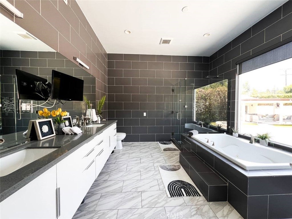 FULLY FURNISHED, COULD BE SHORT TERM RENTAL. This beautifully renovated and fully furnished single-family home features 4 bedrooms and 4 baths, offering spacious comfort and modern elegance. Includes plenty of parking space, in addition to RV and boat access on the side of the house. California living at its finest with a private pool and jacuzzi, perfect for relaxation and entertainment. The property boasts a large, fully renovated guest house complete with a full kitchen and bath, high ceilings, and amenities like A/C and heat. Its separate entrance ensures privacy, making it an ideal retreat for guests or as a private office space. Centrally located near the freeway, yet nestled in a quiet neighborhood, convenience meets tranquility here. Abundant dining, shopping, and grocery options just moments away. Diverse culinary scene, featuring some of the best food in Los Angeles, including the renowned sushi restaurant "Kushiyu." For leisure and entertainment, you'll find a variety of activities nearby, such as escape rooms that offer fun for both kids and adults, and multiple parks with natural water. Additionally, we work with relocation companies. This home has been meticulously updated with outdoor lighting, a spacious backyard, and is impeccably maintained. Can be used for business purposes. May be retreat or detox center. Tenant pay for landscape and pool and spa. RANCH STYLE HOUSE FULLY RENOVATED. MAIN HOUSE IS 3 BEDROOMS AND 3 BATHROOMS (2,500 SQUARE FEET ). THERE IS A GUEST HOUSE INCLUDED IN THE LEASE. TOTAL SQUARE FEET 3,000 SQUARE FEET. TWO CAR GARAGE. BOAT AND RV PARKING AVAILABLE. CENTRALLY LOCATED. QUIET NEIGHBORHOOD. WALKING DISTANCE TO RESTAURANTS AND SHOPPING. OPEN KITCHEN.