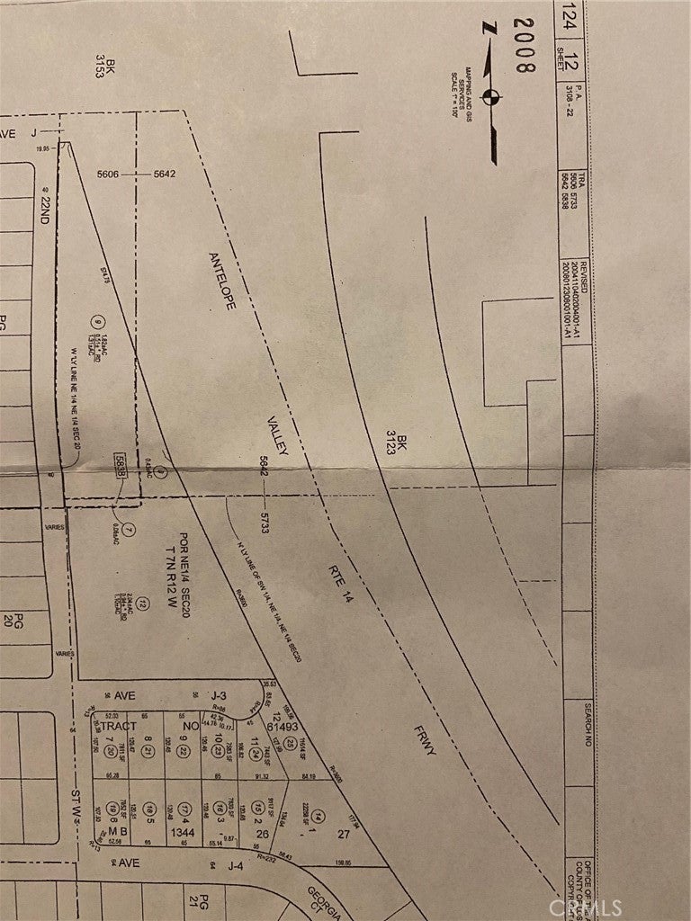A Developer's rare find. This is the low hanging fruit, with utilities available on paved streets of 22nd and J4 and J3. The current construction activity is an on ramp to the 14 Freeway southbound at Avenue J. The remnant land will be developed into a neighborhood park. This is an active community with pride of ownership, with residents who are proactive to keep the area safe and well maintained. Per the City of Lancaster Planning Department, the permitted developments on these rare improved lots as one duplex over tow car garage and two ADU's per lot -MAP BOOK 1344 26-27 - four units per lot, for a total development of 48 units, 014 LOT1 22,264 SF IRR X IRR; 015 LOT2 9,117 SF 120.55 X 91.32 IRR; 016 LOT3 7,830 SF 120.46 X 55.14; 017 LOT4 7831 SF 120.49 X 65; 018 LOT5 7,833 SF 120.51 X 65; 019 LOT6 7,852 SF 107.50 X 52; 020 LOT7 7,811 SF 107.50 x 65; 021 LOT8 7,830 SF 120.47 X 65; 022 LOT9 7,829 SF 120.46 X 65; 023 LOT10 7,583 SF 120.46 X 65; 024 LOT11 7,443 SF 106.82 X 91 IRR; 025 LOT12 11,614 SF IRR X IRR 12 lots for the price of one - rare developable lots with easy access and a beautiful neighborhood.