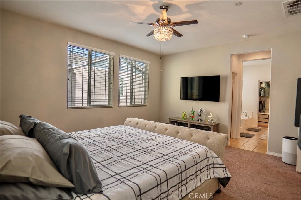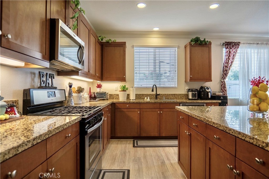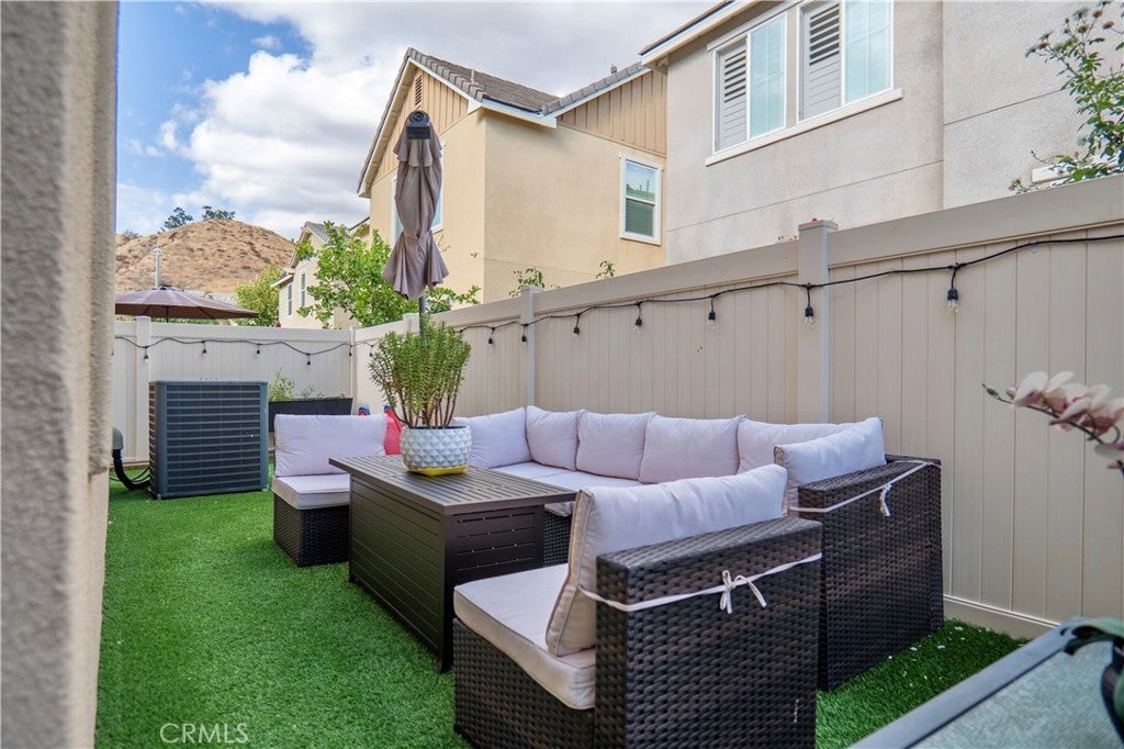 Welcome to your dream home in the tranquil Providence neighborhood of gated River Village! This beautiful 4-bedroom, 3-bathroom residence boasts 2,423 square feet and is nestled among stunning natural surroundings, including an oak grove and miles of scenic hiking trails. As you enter, you'll be greeted by a warm open-concept floor plan featuring elegant luxury vinyl plank flooring and dual-pane windows that bathe the space in natural light. The entertainer's kitchen is truly a chef's paradise, equipped with ample cabinetry, stainless steel appliances, granite countertops, and a central island—ideal for gatherings and culinary creations. The spacious living room seamlessly connects to the private backyard, enhancing your indoor-outdoor living experience. A conveniently located downstairs bedroom and full bathroom provide the perfect setup for hosting guests. Escape to the master suite, a private retreat complete with a walk-in closet and a luxurious en-suite bathroom featuring a soaking tub, separate shower, and dual sinks. Upstairs, you'll find two generously sized secondary bedrooms with ceiling fans, along with a convenient laundry room and a stylish bathroom with a combination bathtub/shower. With brand new crown mouldings adding a touch of sophistication, this home is move-in ready. Enjoy fantastic community amenities, including a pool, spa, barbecue area, playground, and recreation center—all in a peaceful setting just minutes from the Santa Clarita Metrolink Train Station. This home offers more than just living space; it provides a lifestyle waiting for you to embrace. Don’t miss out on the chance to experience everything this charming residence has to offer, including owned solar for added efficiency!
