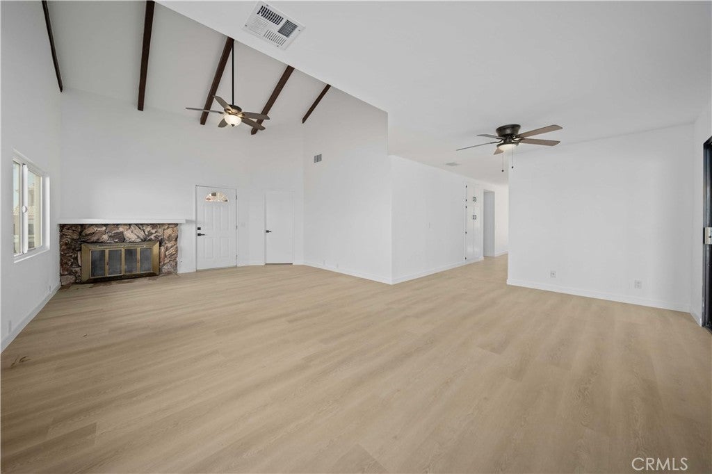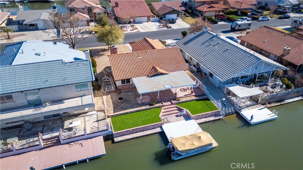 Welcome to your dream lakefront oasis in Victorville, offering serene waterfront living with spectacular marina views. This beautiful 3-bedroom, 2-bath single-family home is nestled in the sought-after Spring Valley Lake community. Spanning 1,488 sq ft on a spacious 7,200 sq ft lot, this home showcases elegance with new tile and laminate flooring, new baseboards, high-beamed ceilings, and fresh interior paint-giving this home an airy, inviting ambiance. The heart of this home is its contemporary kitchen, featuring striking granite countertops, updated cabinetry adorned with new hardware, stainless steel appliances, including a dishwasher, double oven, electric range, and range hood, serving both esthetics and functionality. Adjacent is a delightful dining area perfect for family meals. A cozy living room featuring a fireplace, perfect for warm family gatherings. The bathrooms offer granite counters, chic glass mosaic tile backsplashes, and revitalized fixtures. With central heating/AC, and ceiling fans throughout, ensuring year-round comfort. Enjoy stunning lakeside sunsets with a covered patio, private dock, and breathtaking lake views. Perfect for water enthusiasts, the property offers private boat parking and lake privileges. Embrace serene lakeside living with exclusive community fishing, boating, and more. There is ample parking for vehicles, including a two-car garage, driveway, and a private dock space. The HOA amenities include a 200-acre waterski lake, marina and fuel, a beach with a swimming area, three parks, fourteen fishing areas, and an equestrian center. Located within the community is also a dog park, an 18-hole golf course, and a country club. Ready to make this your dream home? Schedule a viewing today and experience the ultimate in lakeside living.