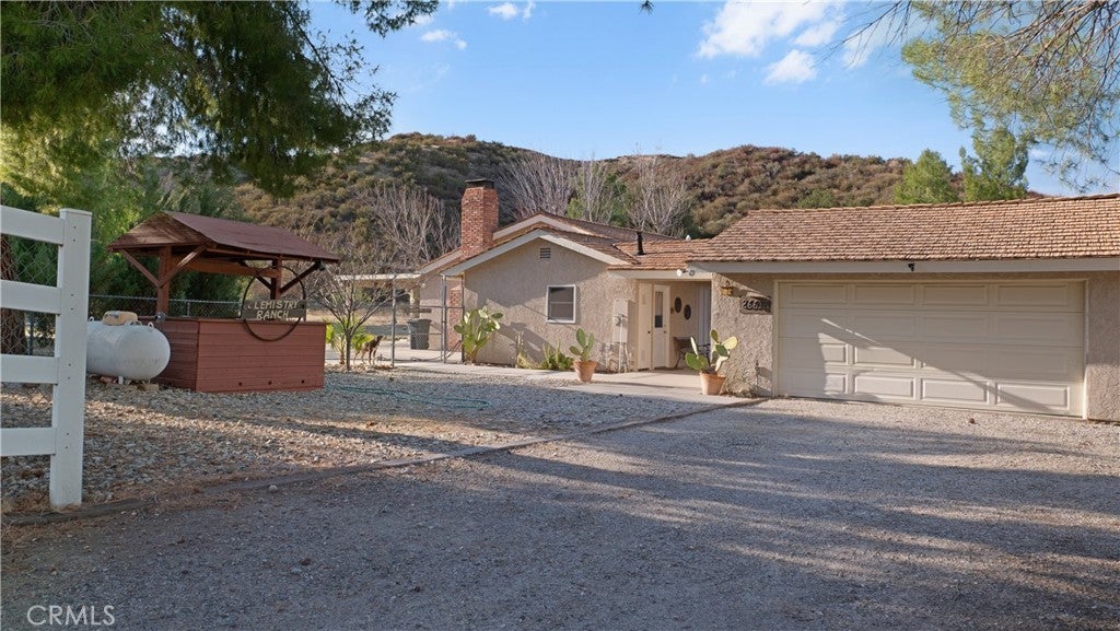 AGENTS - Please read agent remarks. Welcome to your private gated estate in the exclusive Sand Canyon community! Nestled on over 4 acres of serene land with breathtaking mountain views, this property offers the perfect blend of tranquility and convenience—far enough to feel like a retreat, yet close to all local amenities. An entertainer’s dream, this estate provides ample space to host family and friends for weekend BBQs and special gatherings. The stunning chef’s kitchen is a culinary masterpiece, featuring a Wolf oven and stove with a vented hood, custom stone and tile countertops, a double farmhouse sink, and beautifully crafted built-in cabinets. Natural wood and tile flooring add warmth and character throughout the home. For music lovers, a professional music studio is housed in a converted barn, offering a unique creative space. The home also boasts a charming fireplace built with stones sourced directly from the property, as well as copper piping, newer A/C, and both well and city water for added convenience. A dedicated laundry room with a utility tub adds functionality, while custom paint throughout enhances the home’s character. The lush property is adorned with mature trees, including Joshua trees, cacti, and Pacific Oaks. RV storage is also available. Don’t miss the opportunity to make this incredible retreat your next home—it’s guaranteed to impress!
