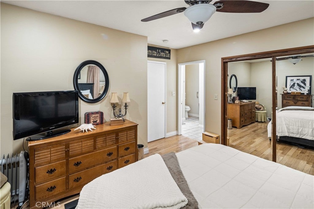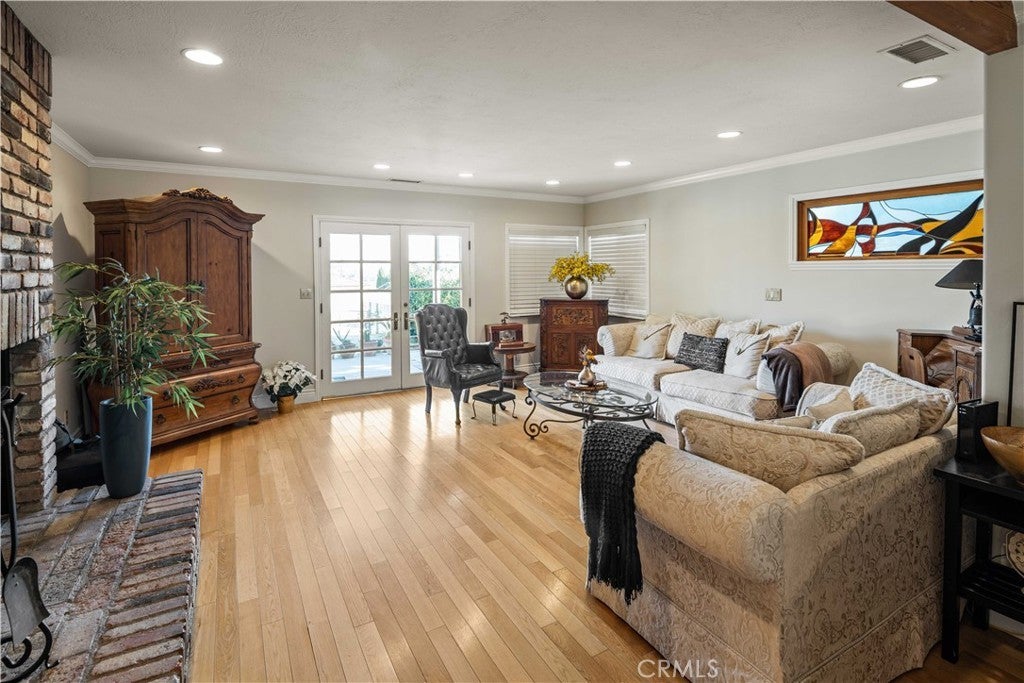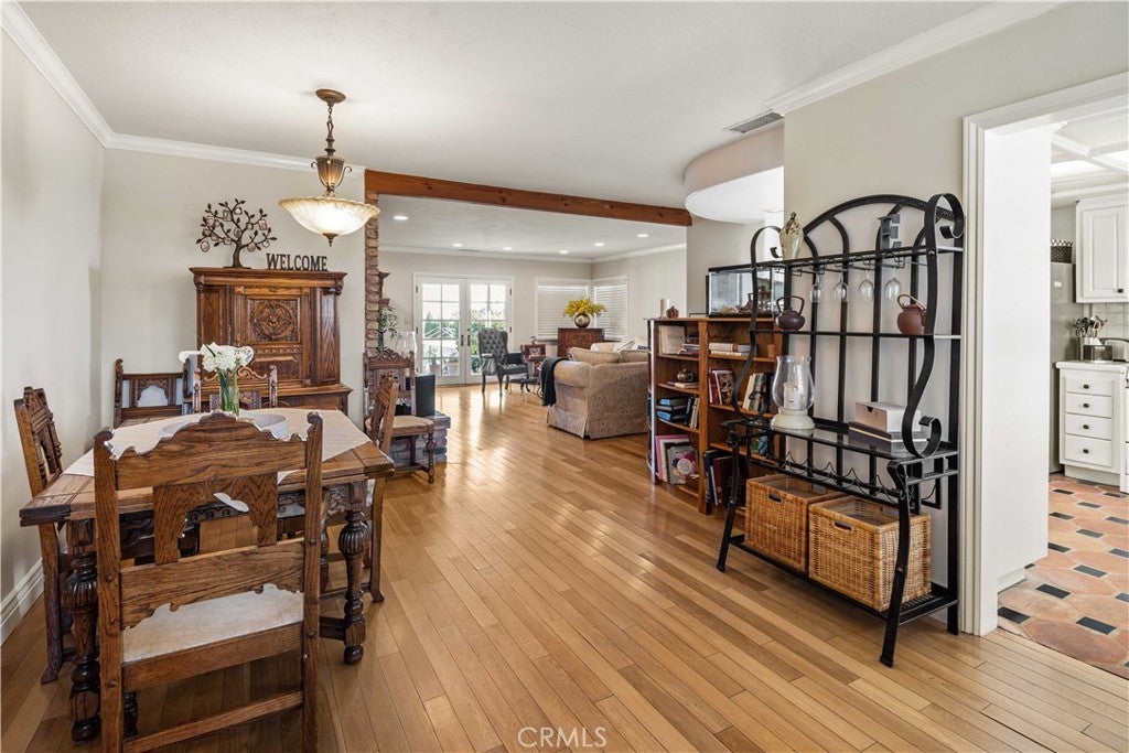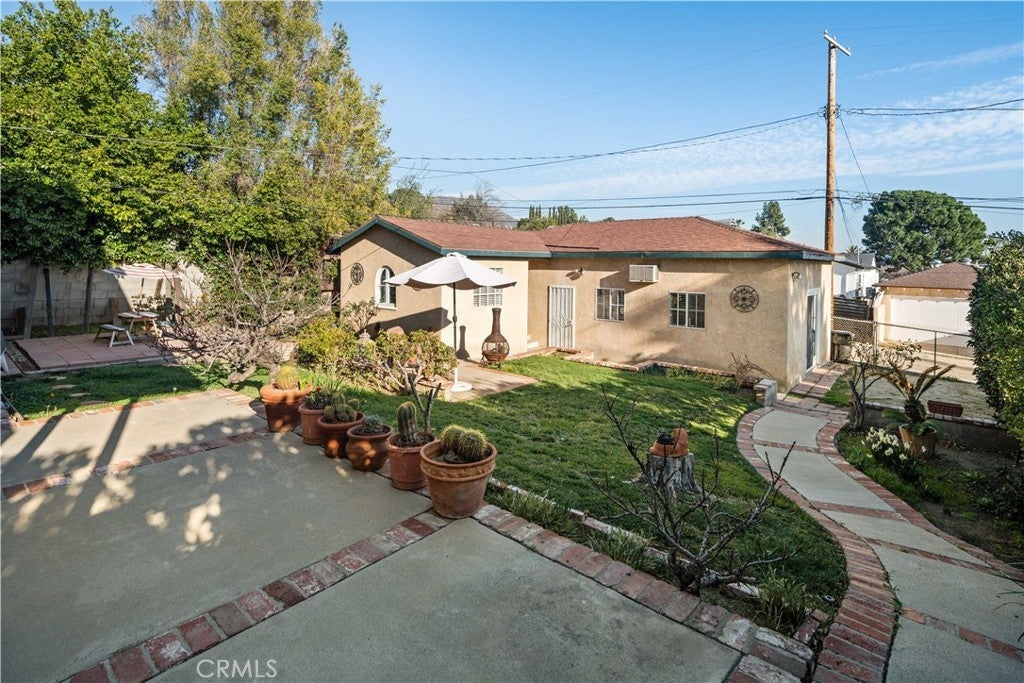 Discover this stunning single-story home, featuring a spacious detached garage thoughtfully converted into a versatile guest retreat—perfect for extended family, a potential rental opportunity, or additional living space. This beautifully designed home is filled with abundant natural light and offers an open kitchen with ample counter space, abundant cabinetry, a built-in seating area, and convenient access to the washer and dryer, all while providing scenic views of the lush front greenery through a bay window. The inviting dining area is perfect for gatherings, while the spacious living room boasts a gorgeous brick fireplace, recessed lighting, and elegant French doors that open to the backyard. A bonus room with a skylight serves as the perfect space for a home office, gym, or creative studio. The primary suite features its own en-suite bathroom with a standing shower, complemented by two additional bedrooms equipped with ceiling fans for added comfort. Elegant crown molding also adds a touch of sophistication. The detached garage conversion offers a private entrance and includes a full living area, kitchen, and a ¾ bathroom with a standing shower, making it an ideal guest house or potential rental unit. Sitting on a large lot with alley access, this property provides ample space and convenience. Best of all, there are no HOA or Mello Roos! This exceptional home blends comfort, style, and versatility—don’t miss the opportunity to make it your own!
