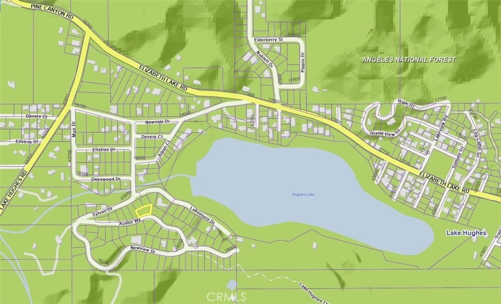 7100 SQ FT residential view lot in Lake Hughes. Water, power, and sewer are available in the street. APN 3242-011-008.