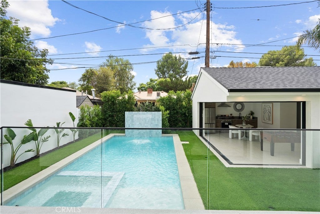 Welcome to resort style living in trendy Valley Village! This new construction home is an entertainer's dream. Features include high ceilings, a spacious layout, and a pool house! As you step into the foyer, the open concept floorplan leads you straight to the massive chef's kitchen with Thermador appliances. This sleek kitchen features an extra large island with a Viola porcelain slab. Along with the ample counter space, there is plenty of space for pots and pans with the custom cabinetry. The concealed Thermador refrigerator is one of many details that shouldn't be overlooked. As you make your way through the dining room, you will be stepping into the light and bright living room that features floor to ceiling pocket sliding doors overlooking the tempting pool with waterfall. The luxurious master suite features a walk in closet and a master bath equipped with a waterfall shower and textured wall tile. This home also features an en suite with it's own bathroom that can double as an office. There are many other luxurious touches throughout the home such as the textured closet doors, french oak flooring and modern chic light fixtures. Delight your guests with the pool house with pocket doors that completely open up to convert the space into your own cabana. Equipped with it's own kitchen, the pool house is essential for hosting gatherings and pool parties. With surround sound throughout and smart home compatibility, this home has it all! Conveniently located to some of the best shopping and dining that the valley has to offer, it is also located in the highly rated Colfax School district.