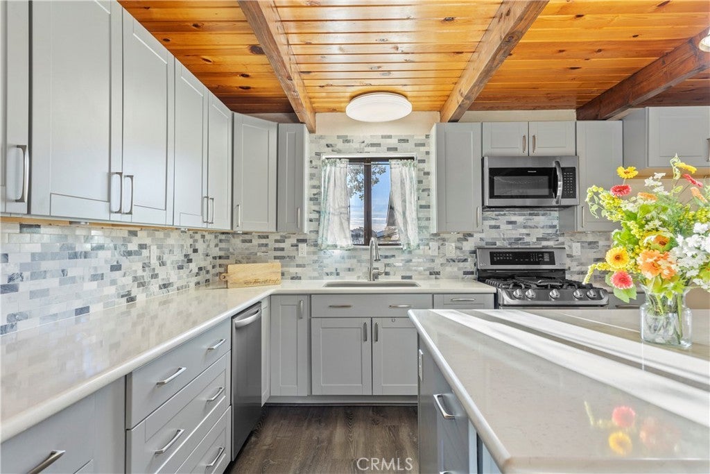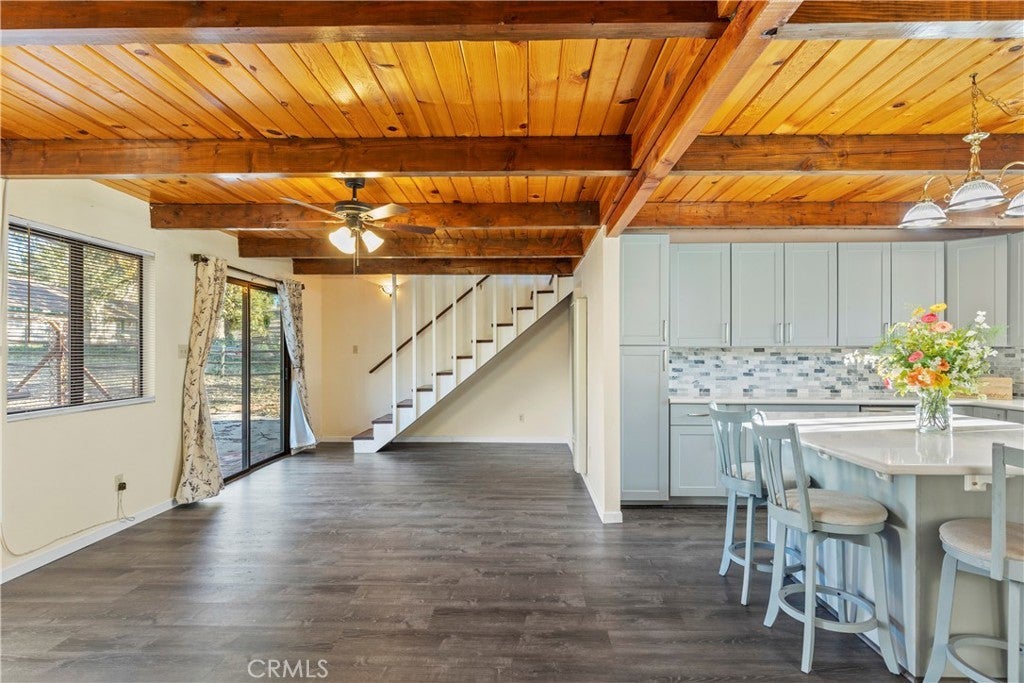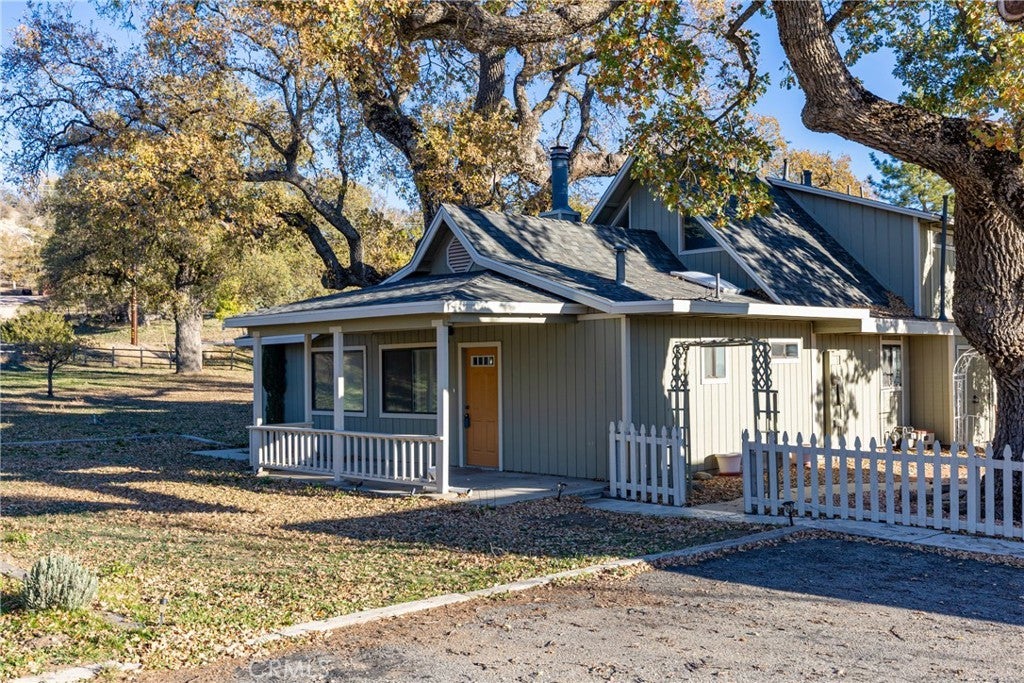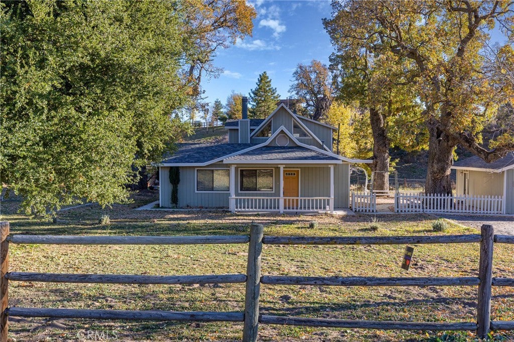 Back on the market! Come see this beautiful home in gated Bear Valley Springs. Enter your home from the front porch into a large living room. Walk across the room and through the door, and you will see the large family /dining room with fireplace for cuddling up, reading a book, and enjoying the crisp winters. Watch the deer as they come to visit. There is a large, open remodeled kitchen with large center island, quarzite counters, large farmhouse style sink, newer oven, microwave and dishwasher. The kitchen also has lots of cupboard space for storage. The laundry room is directly off of the kitchen and has plenty of room for a large washer and dryer, extra cupboards, or to set up your ironing board. There are also 2 bedrooms and 1 1/2 baths downstairs. Upstairs, there is a large primary bedroom, bathroom, and a loft area. Public records show this as a 4th bedroom because of the closet. Outside, there is a lovely covered front porch that is large enough for chairs and tables to enjoy the beautiful evenings with a glass of iced tea in the summers and hot chocolate in the winters. There is a rear patio for those summertime barbeques and family get-togethers. Horses are permitted on the property. Through the sliding door in the family room there is a large patio slab for your barbeque and tables for get-togethers with your family and friends. Also there is another area between the house and detached two car garage for a quiet sitting area that is shaded by oak trees, and has a zen water fountain. It would be a great place to hang lights or to raise a flower garden. Enjoy the community lakes for fishing, swimming, or boating, community pool, rec room, Tennis and pickleball courts, horse and hiking trails, dog park and play areas, dining, golf, campground. There are two fire hydrants next to the property. One is on the Martingale side near the corner, and the other is on the Bear Valley Road side in front of the property. This home sits on an approximately 74,488 square foot corner lot with large oak trees and lots of space for kids to run around and to store your toys!