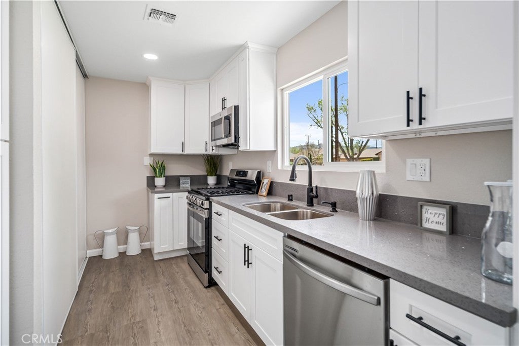 FHA Financeable!!! Fabulous Palmdale Home!!! .. Super Close to Fwy & Shopping... Three Bedrooms .. Two Baths.. Fully Rehabbed.. Brand new super cool wood vinyl floors, Open floor plan, Kitchen have been renovated with new cabinets, Quartz countertop, New Appliances stove, dishwasher & microwave.. Bathrooms have been renovated with new vanities, Quartz countertops, deep under mounted sinks with new tubs and showers. .. Rear yard is Oversized .. Plenty of privacy and room to play..Lot is over 7,000 Sqft lot!! Come preview this rare property offering today, you'll be pleasantly surprised! New HVAC!!