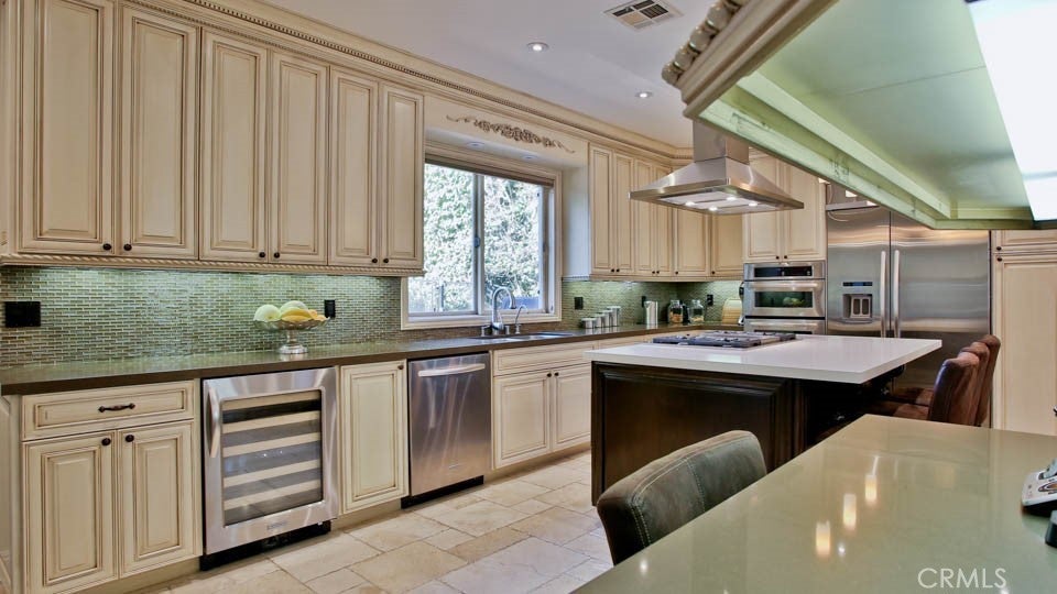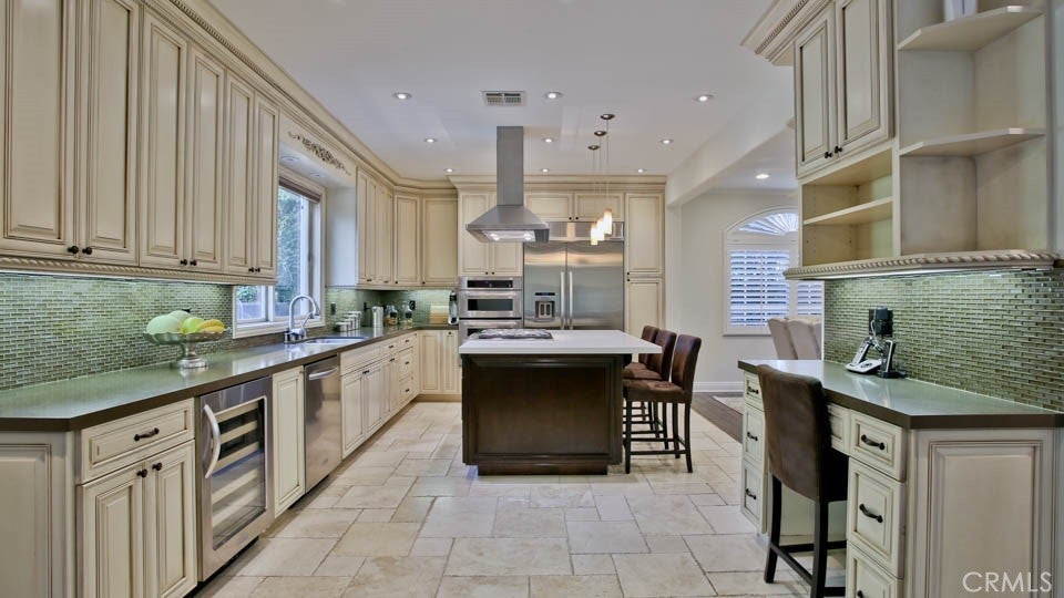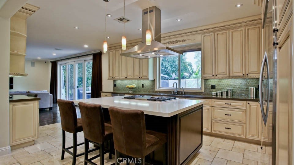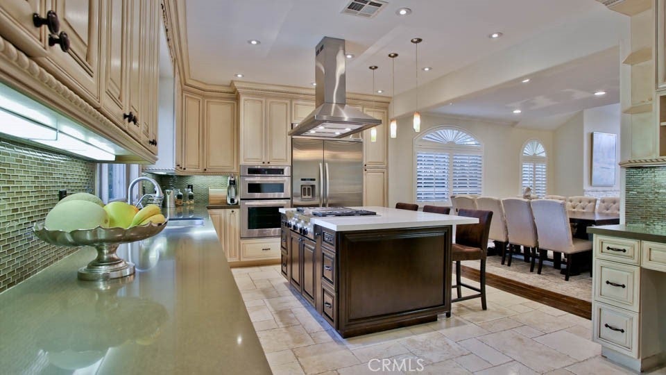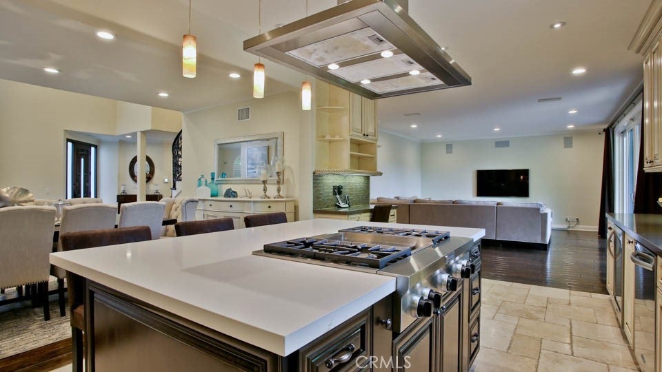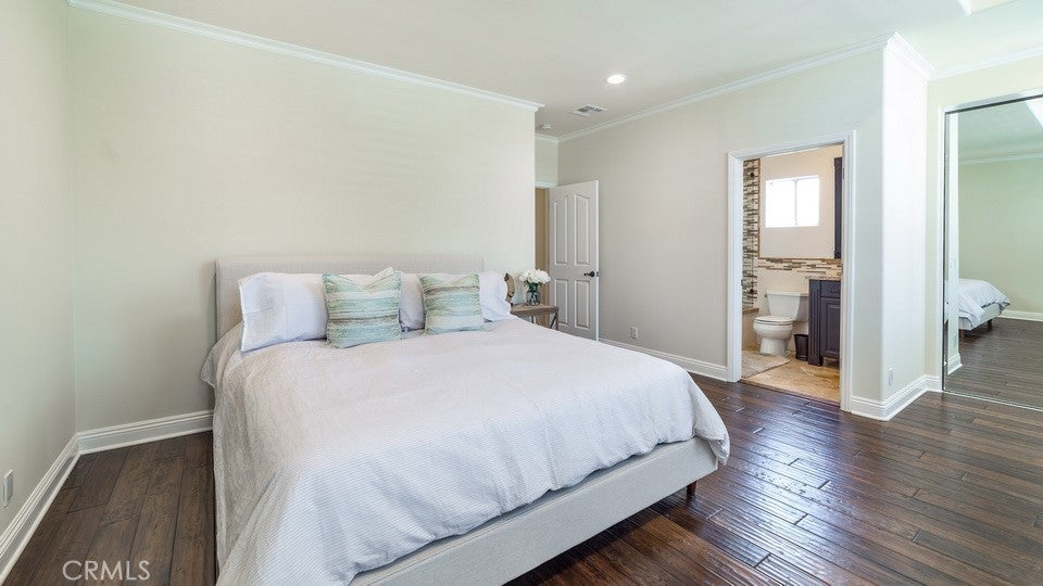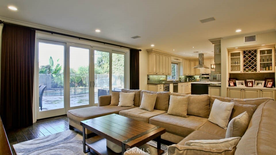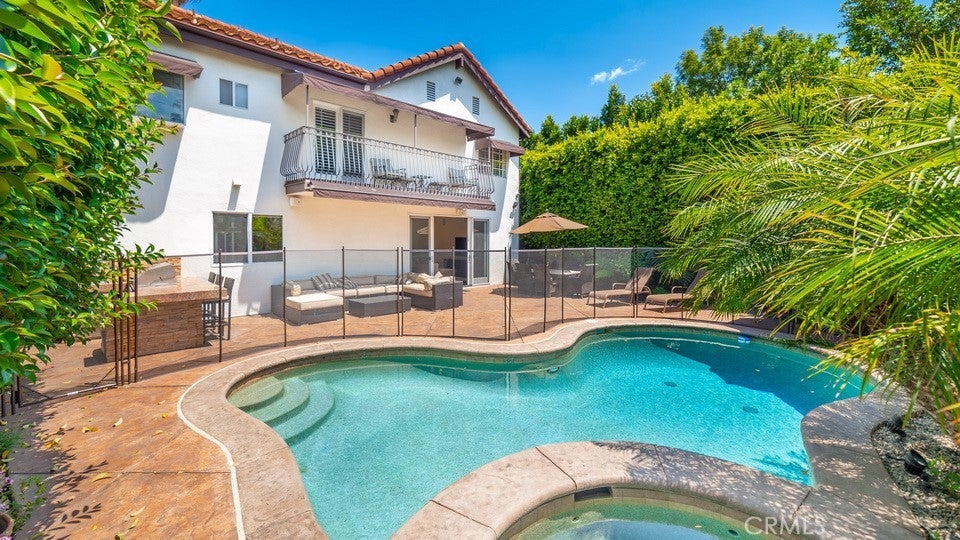 Welcome to this beautifully remodeled and fully furnished home located in prime Sherman Oaks just steps away from great restaurants and shops on Ventura Blvd., Westfield Mall, Trader Joe’s and Ralphs. This spectacular two story, 5 bedroom, 4.5 bathroom, private and gated home features high ceilings, dark hardwood floors, LED recessed lighting throughout, designer kitchen with Caesar Stone counters, center island, custom cabinets, and built-in stainless steel appliances including a wine fridge. The formal living room with soaring high ceilings and gas fireplace, provides a focal point for the residence. The adjacent formal dining room opens to the kitchen and connects to the bright and spacious family room. A beautiful stairway leads up to 3 bedrooms plus an over-sized Master suite with breathtaking walk-in closet, fireplace and balcony, it’s like a dream! The master bathroom features dual sinks, steam shower and Jacuzzi tub! Private resort styled backyard featuring a sparkling, salt water system pool, spa and waterfall with built-in BBQ area equipped with a sink, fridge and marbled counter top is just perfect for entertaining. Notable features include fully integrated alarm system, 8 HD video surveillance cameras, and indoor/outdoor surround sound system. Brand new furniture throughout the house and a thermostats on each floor.