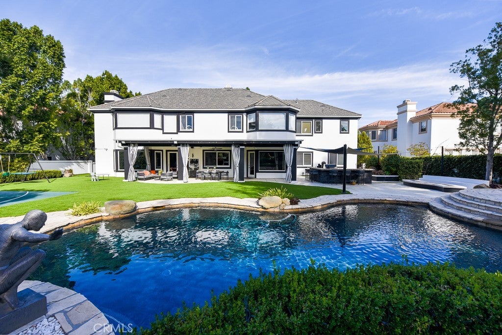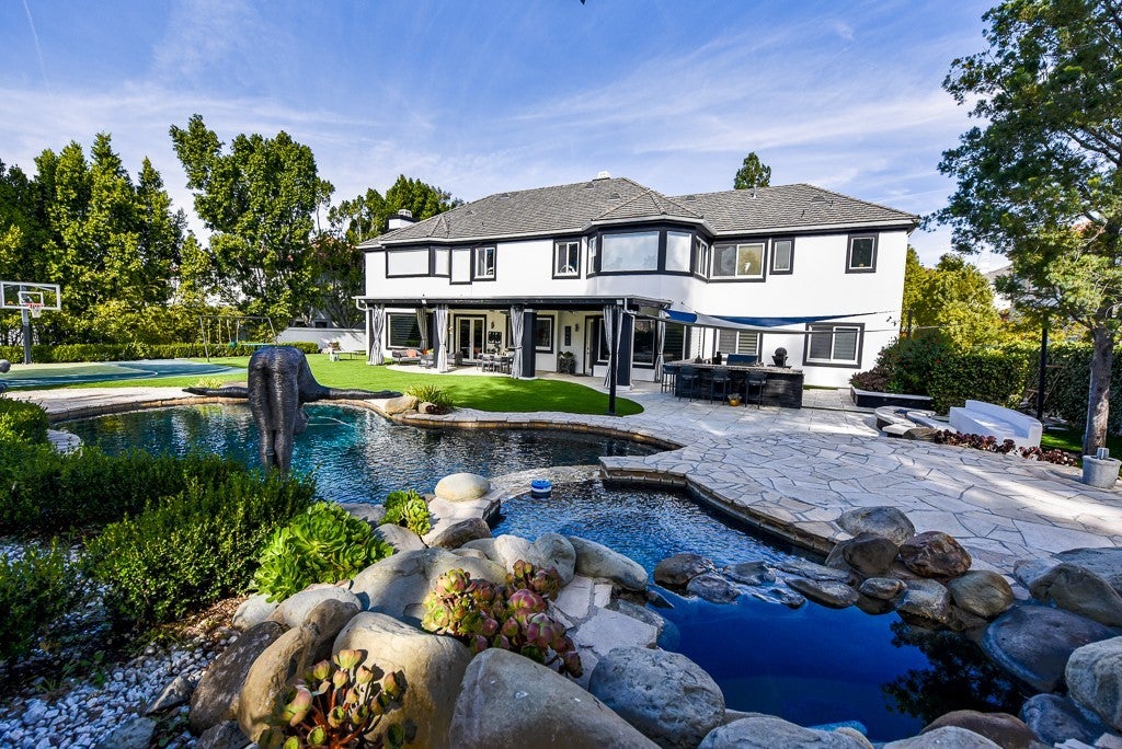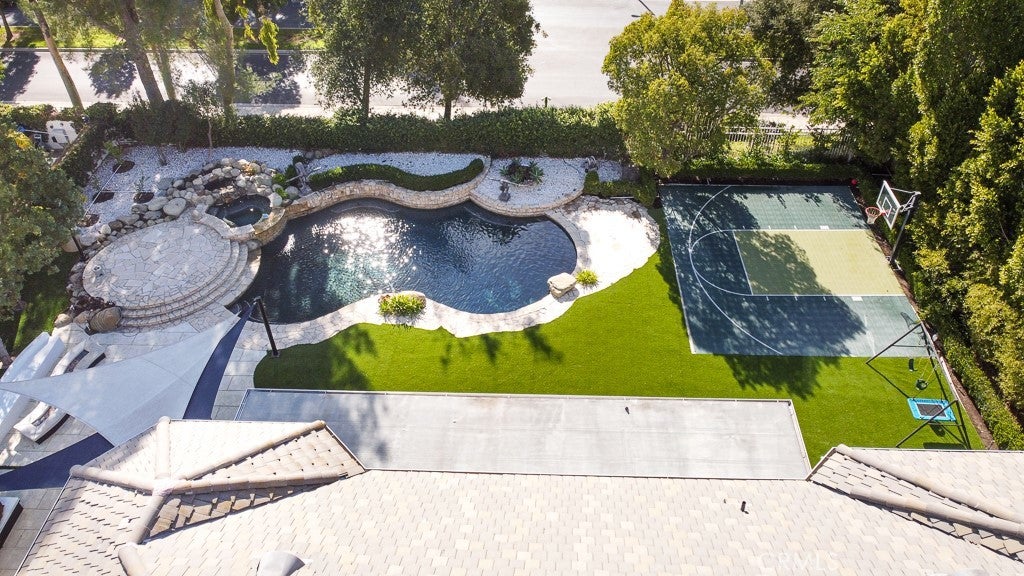 Welcome to this exclusive sanctuary home in the highly sought-after Mountain View Estates of Calabasas. This home is an architectural masterpiece where luxury, comfort, and modern design come together in perfect harmony. Spanning an impressive 7,329 square feet, this estate is the epitome of sophistication, offering a lifestyle of unparalleled opulence and breathtaking beauty. Nestled in one of the most prestigious neighborhoods, this home is a rare gem, where serenity meets grandeur in every corner. Fully furnished with hand-selected designer pieces, it is an entertainer’s dream, bathed in natural light that accentuates the open-concept spaces. With six expansive bedrooms, seven lavish bathrooms, and meticulously crafted living areas, this home offers the ultimate in both style and functionality. The attention to detail is evident at every turn—from the custom-crafted fireplaces adorned with exquisite stones to the flawless finishes that elevate every room. The chef’s kitchen is nothing short of spectacular, featuring top-of-the-line appliances, custom cabinetry, and an oversized island, making it a perfect space for both intimate gatherings and large-scale entertaining. Whether you’re preparing a gourmet meal or hosting a dinner party, this kitchen is a true culinary haven. The luxurious primary suite offers a peaceful retreat, with his-and-hers walk-in closets and a spa-inspired ensuite bath designed for relaxation and indulgence. A sanctuary in itself, it exudes elegance and tranquility. The home offers plenty of closet space, even including a grand motorized closet carousel, which is sure to wow and impress. Step outside into a true paradise, where a sparkling pool invites you to unwind and an incredible half-court basketball court adds a playful touch to the resort-like atmosphere. Designed for both relaxation and entertaining, the outdoor living spaces are nothing short of extraordinary, with ample space for dining, lounging, and enjoying the Southern California sun. Perfectly situated just minutes from the Calabasas Commons, high-end shopping, and gourmet grocery stores, this estate provides not only luxury but also unmatched convenience. This home offers the perfect blend of elegant design, tranquility, and access to everything the vibrant Calabasas lifestyle has to offer. More than just a home, this is a once-in-a-lifetime opportunity to live the dream—luxury, comfort, serenity, and style.
