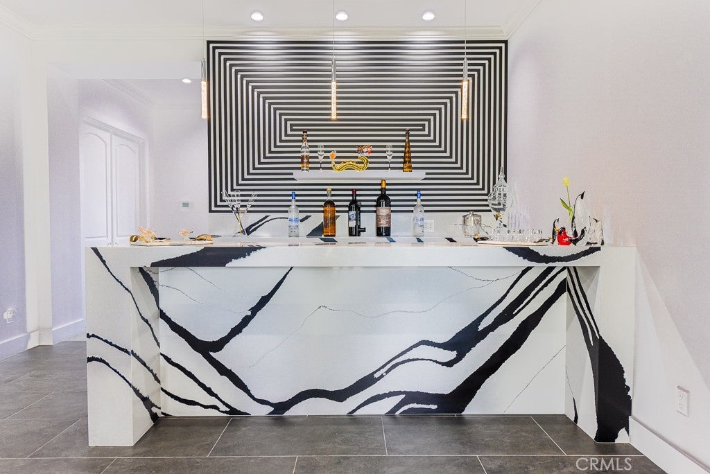 • Interior FeaturesWet Bar, Ceramic Counters, Crown Molding, Coffered Ceiling(s), Furnished, High Ceilings, Open Floorplan, Pantry, Recessed Lighting, Two Story Ceilings, Bar, Wired for Sound, Bedroom on Main Level, Entrance Foyer, Galley Kitchen, Primary Suite, Walk-In Pantry, Wine Cellar, Walk-In Closet(s)