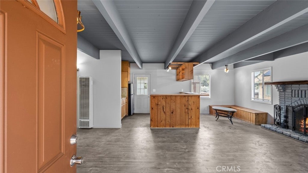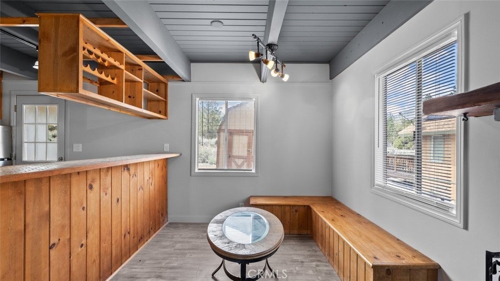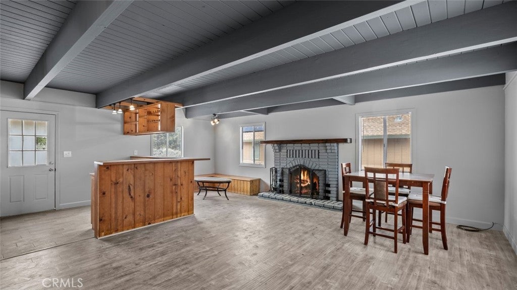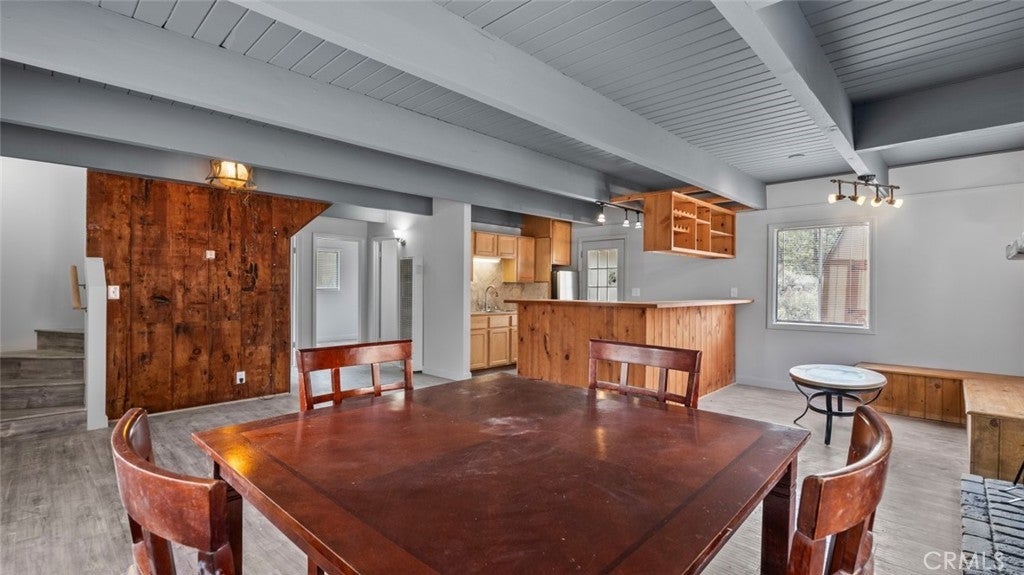 Nestled amidst the breathtaking landscape of Pine Mountain Club, this exquisite home is a true gem, surrounded by majestic mountain vistas and offering an array of desirable features including a spacious deck, a cozy fireplace, and abundant living space. With 3 bedrooms, 2 bathrooms, and a generous property size of 1788 square feet, this residence epitomizes comfort and tranquility. Upon entry, you're welcomed into a charming living room adorned with a stunning stone fireplace, perfectly complementing the adjacent breakfast nook. The kitchen, adorned in light wood finishes, provides ample space for culinary creations, complete with a designated area for wine and other kitchen essentials. The primary bedroom is a sanctuary of luxury, boasting expansive dimensions and lofty ceilings, accompanied by its own luxurious full bath. Meanwhile, the remaining two bedrooms offer ample space, enhanced by the natural light filtering in from the picturesque surroundings. Head outside onto the deck to indulge in panoramic views of the landscape, creating an idyllic setting for relaxation and outdoor entertaining. Follow the deck to discover the convenient shed nestled in the serene backyard, adding functionality to the charming outdoor space.