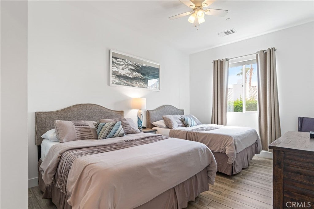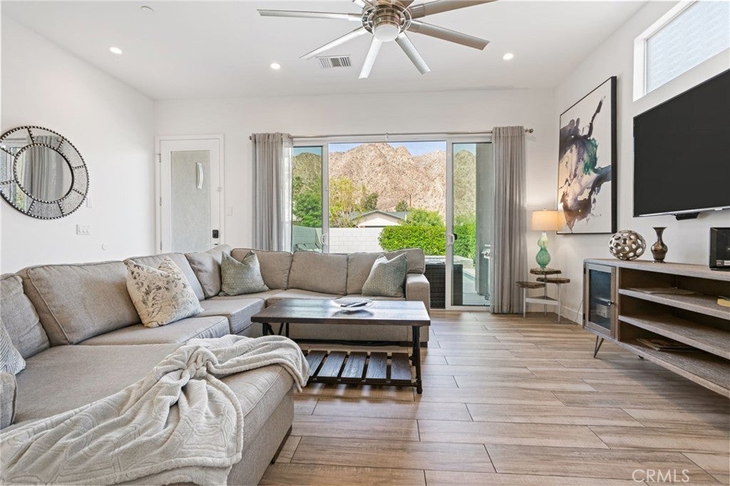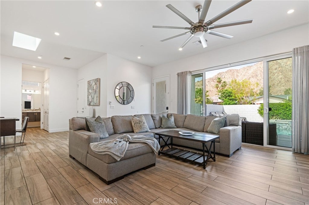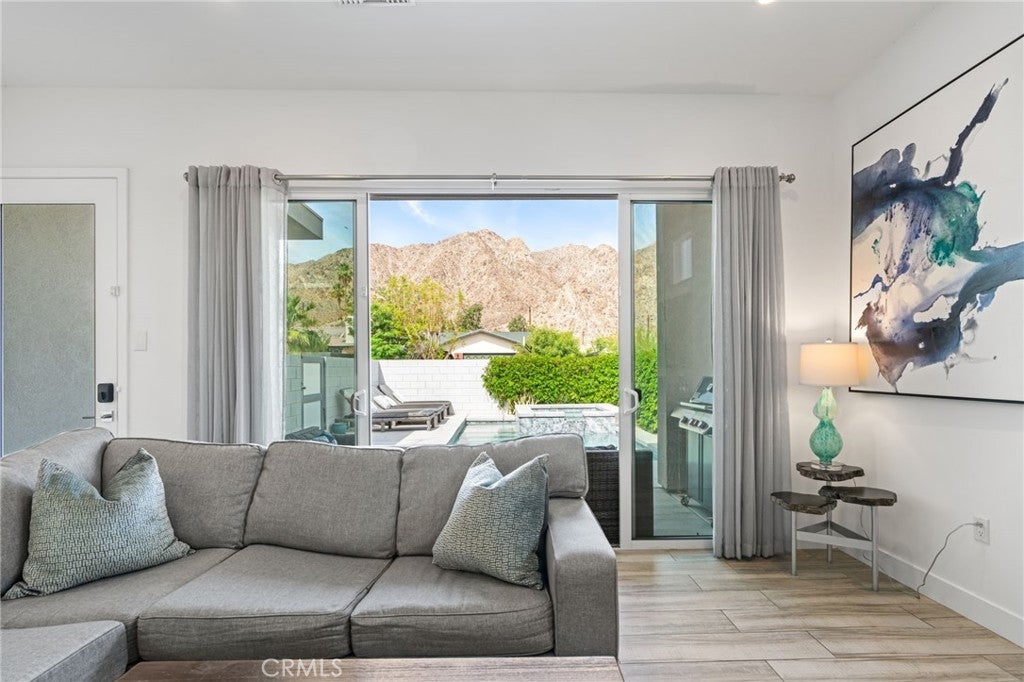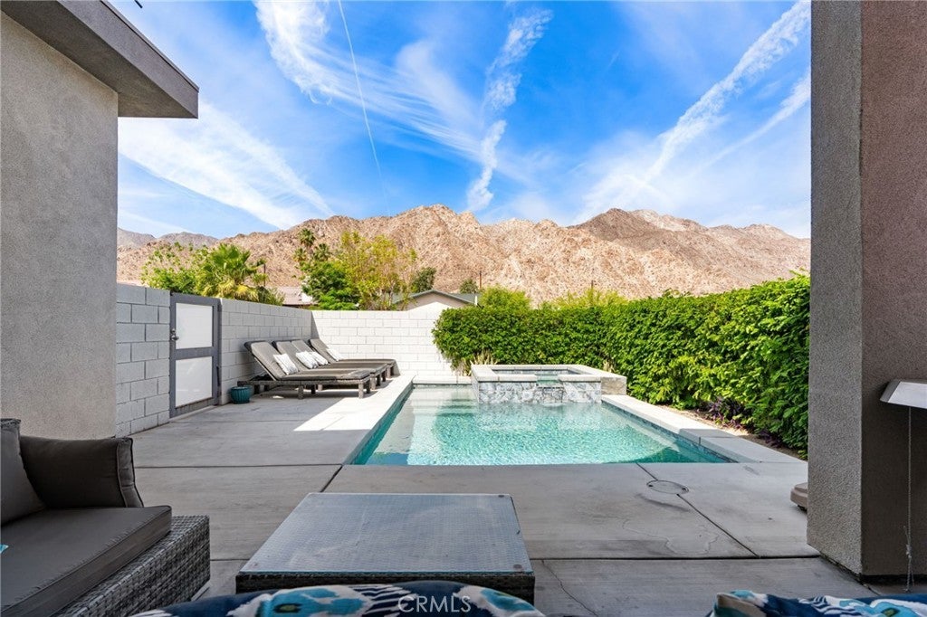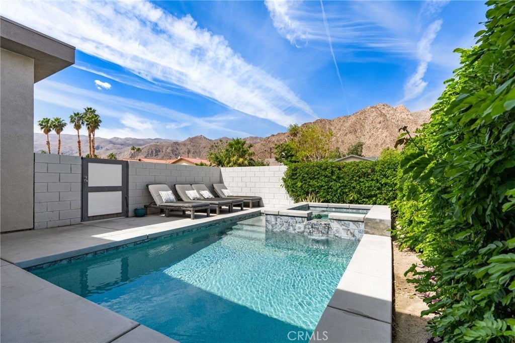 Upper La Quinta Cove Gem! This beautiful mid-century modern home features 4 bedrooms and 3.5 baths, including a primary suite and a rare junior suite. Enjoy a like-new feel with a spacious great room, an oversized dining room, and a gourmet kitchen boasting quartz countertops and stainless steel appliances. Soak in breathtaking west-facing mountain views from your private courtyard, complete with a Pebble Tec pool and spa. The heated pool and spa ensure year-round enjoyment. For outdoor enthusiasts, this home is a hiker's dream, located just steps from the Santa Rosa Mountain trails. Furnishings are negotiable
