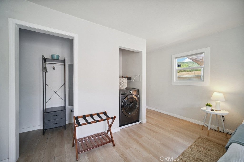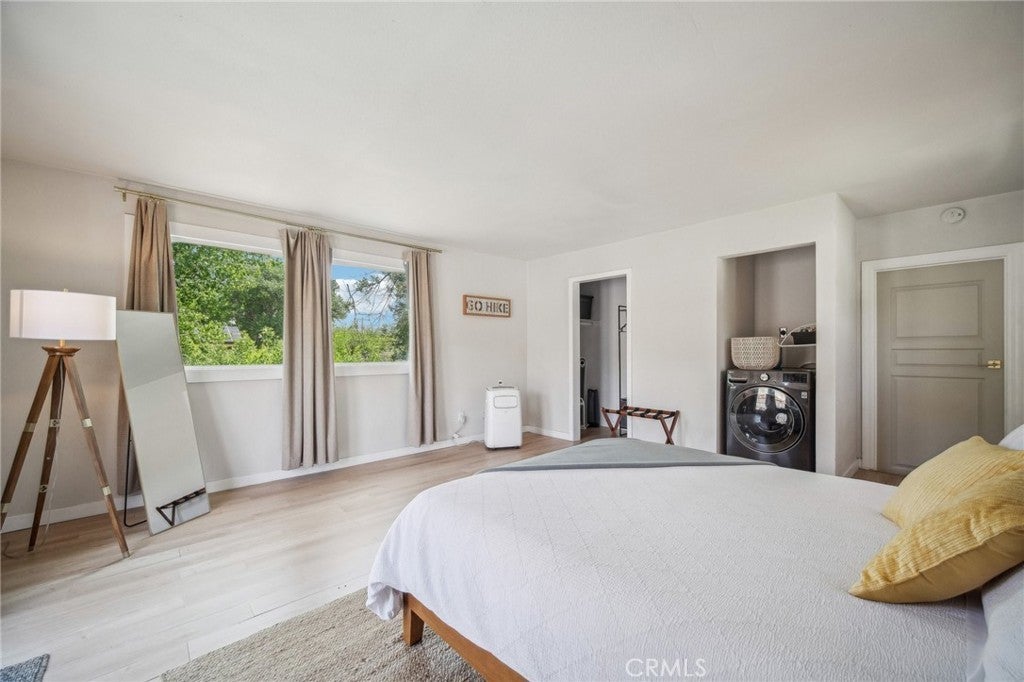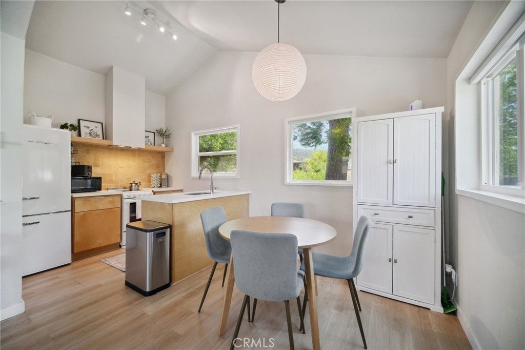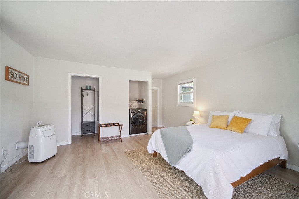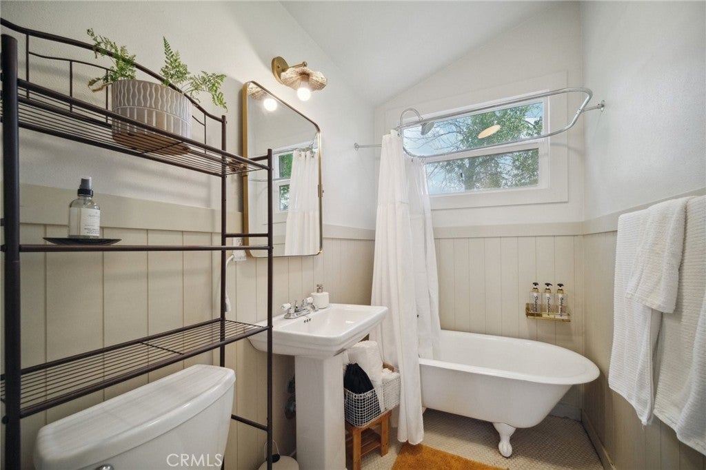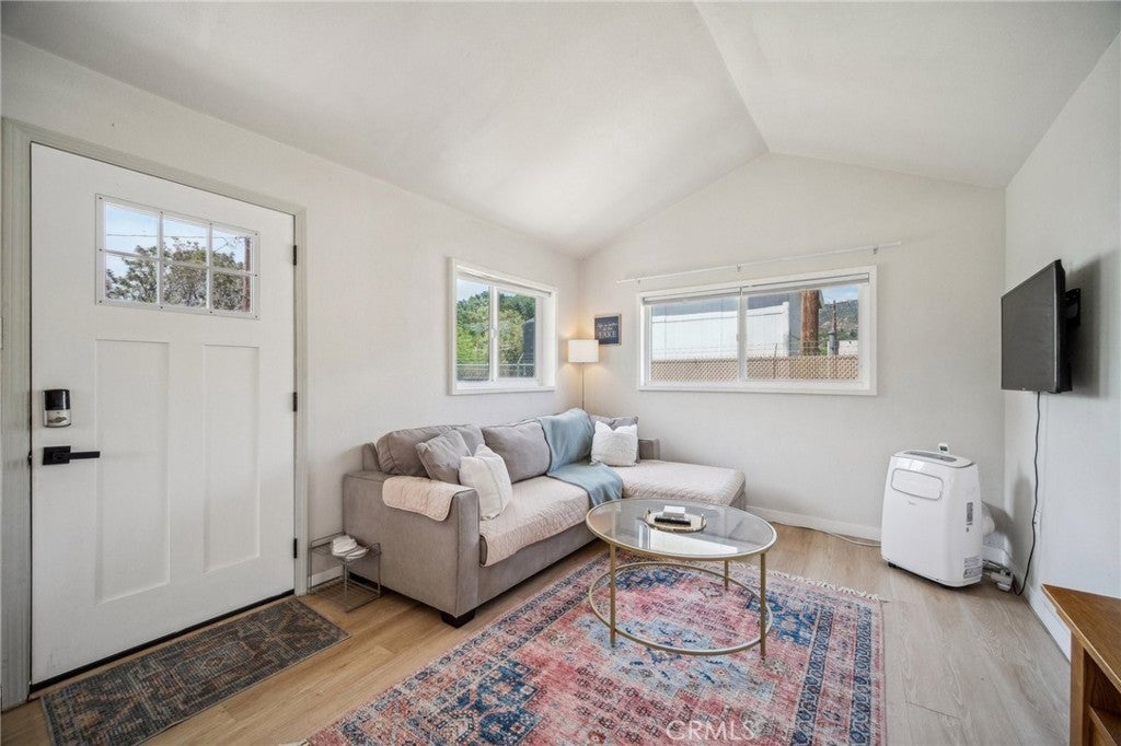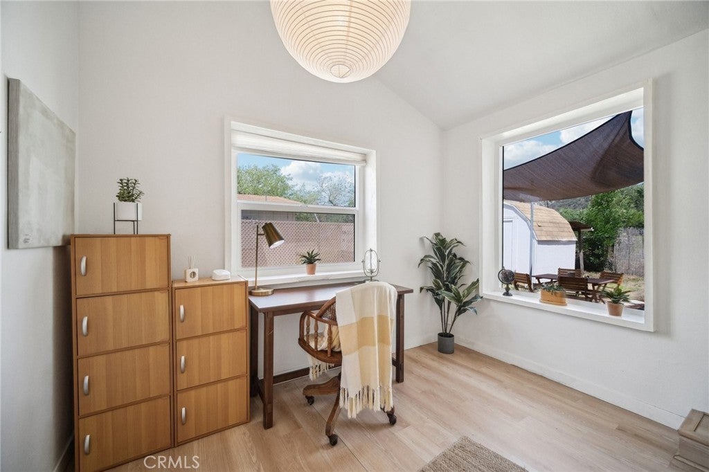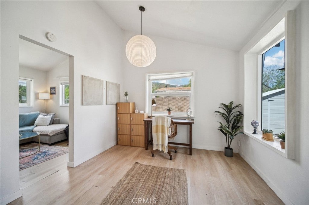 Modern, bright, and full of character, this 1-bedroom, 1-bathroom gem is perfectly situated near the town center and the lake—making it an ideal weekend escape or a full-time peaceful haven. Step into a cozy living room that opens seamlessly to the kitchen and dining area, all filled with natural light from abundant windows that showcase serene views of surrounding trees and nature. Just off the living room, you'll find a versatile study, a stylish full bathroom featuring a classic clawfoot tub, and a spacious primary bedroom with a walk-in closet and convenient in-room laundry. French doors from the bedroom lead out to a backyard designed for entertaining, complete with a steel soaking pool and tranquil views of trees and mountain tops. A large storage shed adds extra functionality. Currently operating as a successful Airbnb, this home is beloved by guests for its charm and tranquility. Just minutes away, explore the local favorites—The Rock Inn with its cozy vibe, great food, and drinks, Lucky Days Bar, and outdoor adventures like hiking, Shadowland Foundation, Running Horse Ranch, and Quail Run Ranch offering educational programs. Whether you're looking for a peaceful full-time residence, an income-producing vacation rental, or a personal weekend getaway—this home delivers relaxation, beauty, and that magical Lake Hughes charm.