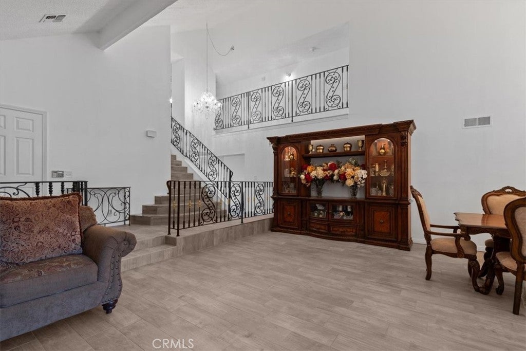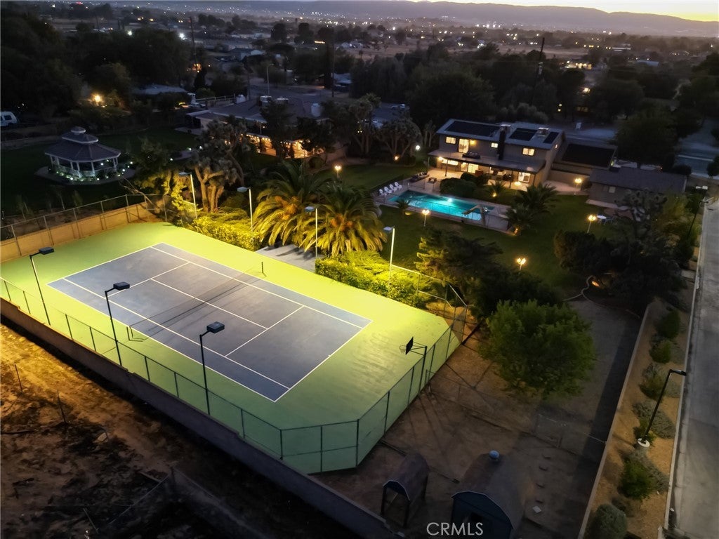 ***CUSTOM RANCH STYLE HOME*** Subject property offers 6 ample bedrooms, which includes a game room, an office/den, and an exercise room, on a 3,773 Sq Ft of living space, sitting on a 1.064-acre LOT, with its very own 5,000 Sq Ft private TENNIS COURT, and a fenced LAP/EXECERSICE POOL. Last but not least, the ample detached 2 car garage has its own private entrance, and its own electrical panel box, ideal for an ADU conversion. As you make your way inside you will be greeted by a gorgeous, and elegant chandelier, beautiful custom tile wood flooring, and an elegant French door. The kitchen offers custom tile wood flooring, elegant quartz counter tops, white cabinetry, two pantries, and an amazing view of the custom, manicured backyard. The family room offers a custom fireplace, and a custom wet bar with its built-in wine cooler, perfect for entertainment. The dining area offers an elegant chandelier, custom tile wood flooring, and a gorgeous view of the water fountain. The living room offers a custom fireplace, custom wrought iron rail, and beautiful custom tile wood flooring as well. The stairs, and second floor hallway also offer a custom wrought iron rail, and tile wood flooring. The primary bedroom offers its very own balcony with custom tile, and a wrought iron rail, with a perfect view of the manicured backyard, and city lights. The primary bathroom offers a custom, and ample walk-in shower, granite counter tops, a vanity area, a walk-in closet, and a separate toilet room. The rest of the bedrooms offer new ceiling fans, and tile wood flooring. The custom bathrooms also offer tile wood flooring, and ample walk-in showers. As you make your way to the backyard you will find plenty of fruit trees (pomegranate, apricots, apples), and beautiful palm trees, giving that tropical vibe. The covered patio offers custom tile flooring, a custom BBQ, and a custom wrought iron BAR, perfect for all your summer family gatherings. The lap/exercise pool offers a diving board, a slide, and fully fenced by a wrought iron gate, should you have any little ones. The private tennis court offers, Vinyl-Coated Chain-Link Fencing, and 8 OUTDOOR TENNIS COURT LIGHTS. Best part of all, this home sweet home is conveniently located minutes away from all amenities including COSTCO, KAISER Permanente, recreational parks, shopping centers, restaurants, and easy access to the north, and south freeway.
