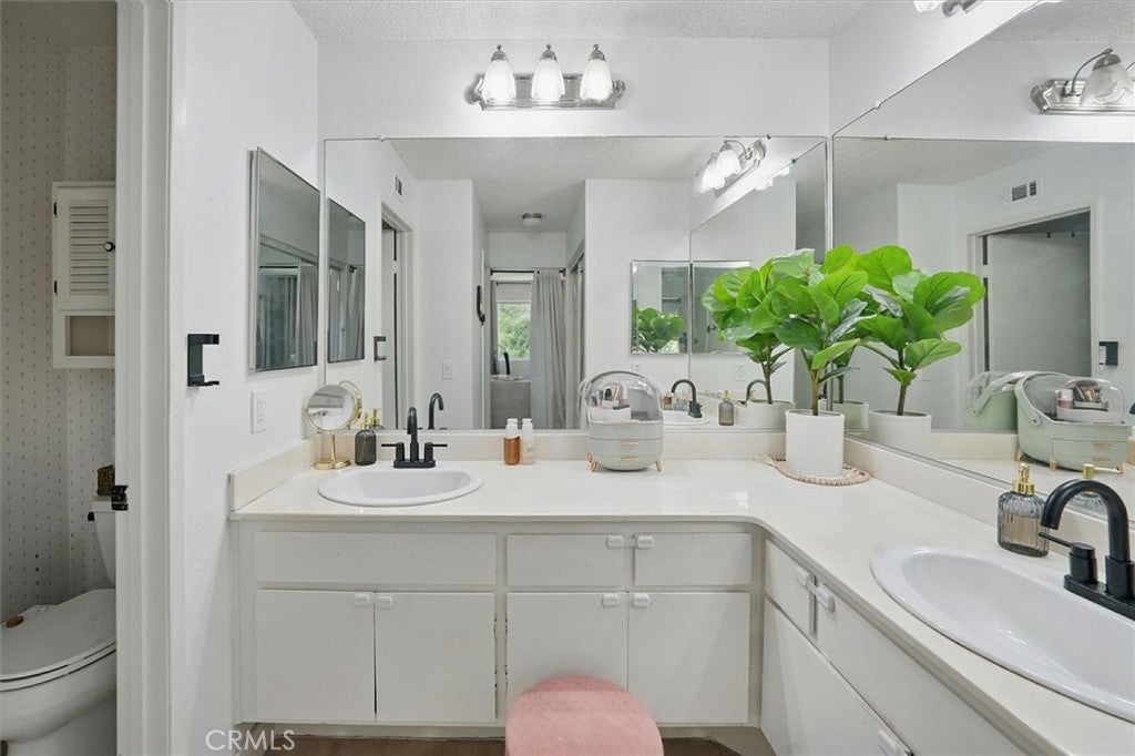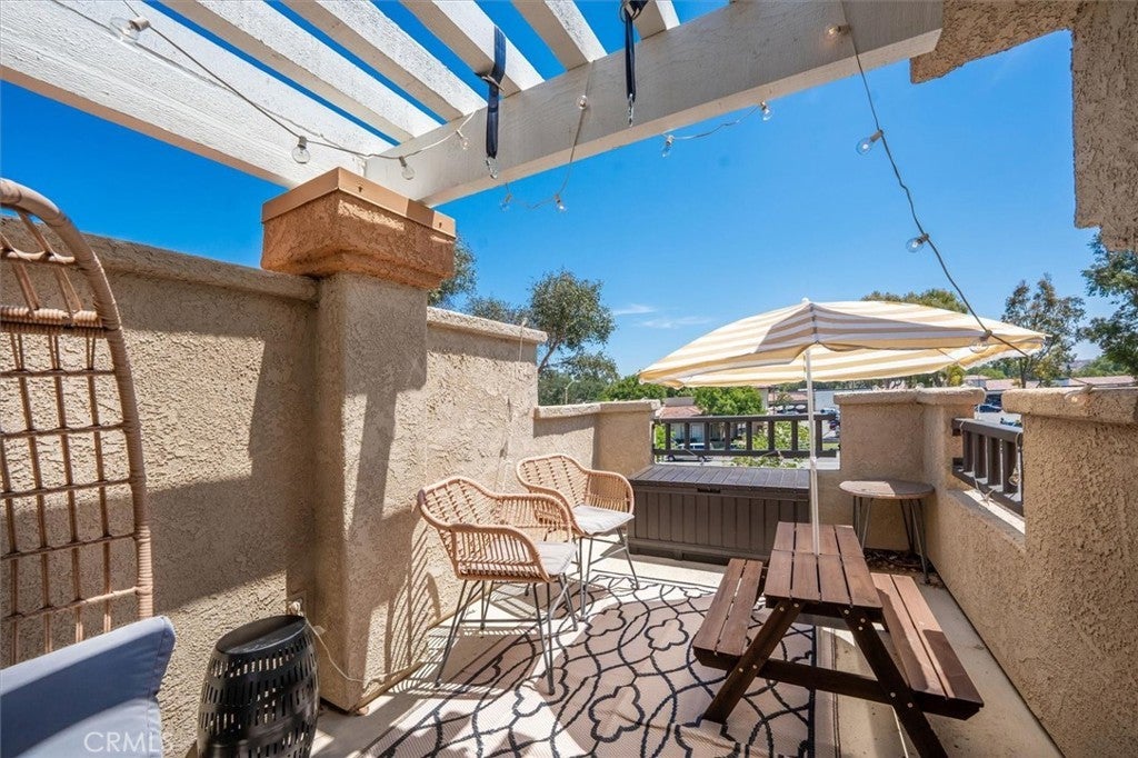 Welcome to Las Ventanas — one of Santa Clarita’s most sought-after gated communities — where this top-floor 2-bedroom + loft condo offers comfort, convenience, and endless potential. The kitchen features a window with a direct and open view to the living area, making the space feel connected while still defined. Step outside to not one, not two, but three private patios — perfect for enjoying your morning coffee, dining al fresco, or simply soaking in the sunshine. Additional features include in-unit laundry, a private one-car garage, and an assigned covered parking space. The versatile loft adds extra room for a home office, gym, guest space — or all three. But what truly sets this home apart is its unbeatable location. Just steps from your front door, you’ll find all the essentials, including a grocery store, restaurants, pharmacy, yoga studio, bank, and more. You’re also just minutes from major shopping destinations, city tennis courts, and expansive parks. And thanks to the scenic Paseo trails that surround the community, it's easy to get around on foot or by bike without relying on your car. Las Ventanas also offers residents plenty of guest parking, and a sparkling community pool. Whether you're looking to create your first home or invest in a low-maintenance lifestyle close to it all, this condo offers the perfect opportunity. This home is truly Valencia living at its FINEST!